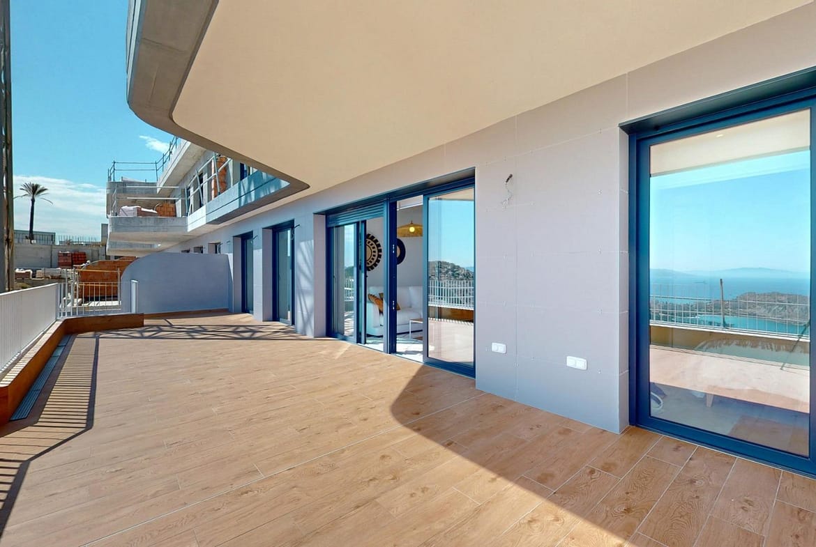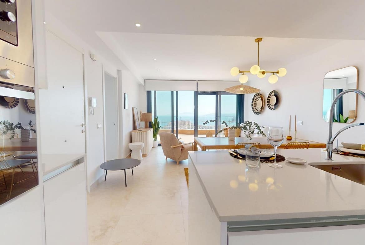 THE TRANQUILITY OF THE SEA IN YOUR HOME !!! 1, 2 and 3 bedroom apartments, penthouses and duplexes with spectacular terraces. First line of the sea on a hill in front of the Isla del Fraile in Águilas. Its design and architecture is integrated into the beauty of the natural environment where it is found, respecting and enriching it. Thanks to their elevated location, the homes have been designed to make the most of natural light and to offer spectacular views of the Mediterranean Sea from their large terraces. The noble materials, the use of the morphology of the mountain and the large amount of vegetation achieve a perfect harmony between the homes and the natural environment where it is located. The residential is located in the Isla del Fraile Resort, which has sports areas, restaurants and private security. A few minutes away are commercial areas with a supermarket, restaurants, cinemas and all the services offered by the city of Águilas. The city of Águilas has 28 kilometers of coastline in which there are 35 beaches with different types of sand thickness located in different landscapes, from coves and virgin beaches in natural settings to the urban beaches of the town of Águilas. Its warm desert climate is present all year round with an annual average of 22º with mild temperatures in winter and very hot in summer. Águilas is a perfect enclave for diving, water sports, hiking and golf.