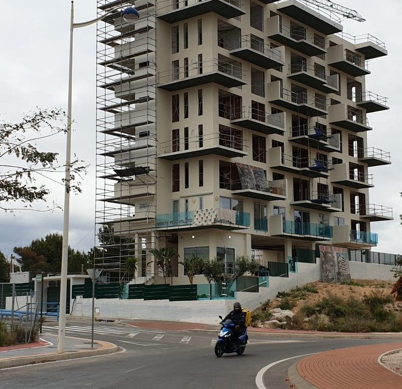 NEW BUILD APARTMENTS IN LA CALA DE FINESTRAT New Build residential of 21 apartment in La Cala de Finestrat. This apartments have 1 bedroom, 2 bathrooms, open plan lounge with kitchen and terrace. Residential consists of 8 floors and have communal garden with infinity pool plus hydromassage and recreational areas. Underground parking and storage room are optional at an extra cost. The construction will be carried out with top quality materials and a robotic energy saving system, in addition to other technologies such as remote door opening. The complex located 15 minutes walk from Poniente beach, 15 minutes from the “La Marina de Finestrat” shopping centre. Alicante airport is 44 km away.