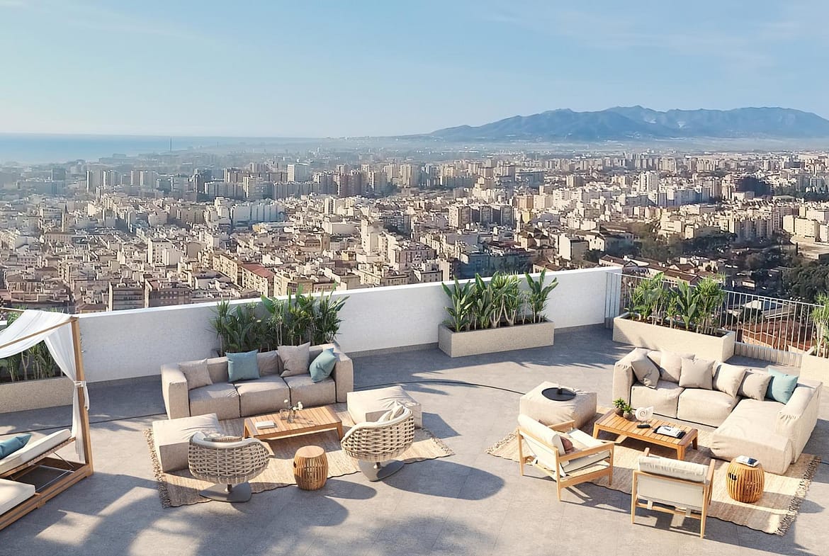 1 to 3 bedroom flats in a residential complex in the heart of Málaga with two shared basement floors for garages and communal areas on the ground floor. A building with the best views of the Costa del Sol.