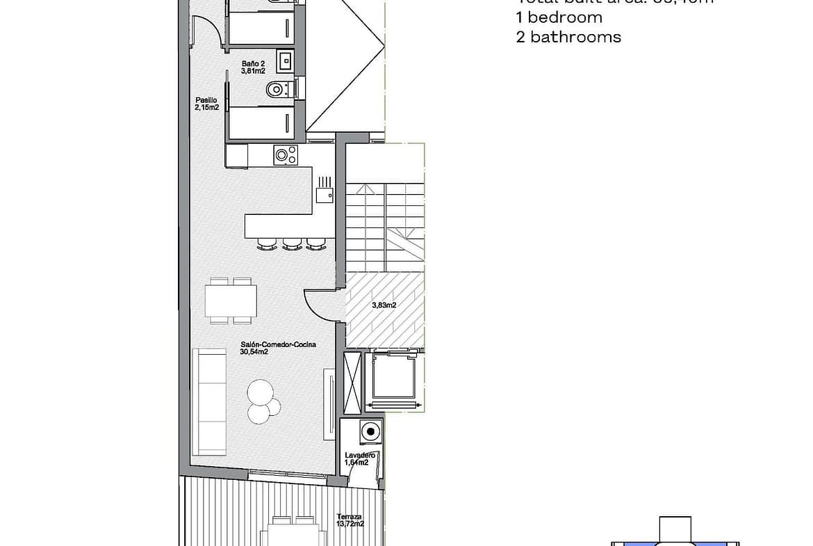 Modern New Build Apartments in the Heart of Torrevieja, Just 600 m from the Sea Exclusive Boutique Development in Central Torrevieja Discover an exclusive residential project of only 7 modern new build apartments, ideally located in the vibrant center of Torrevieja, Alicante. Just 600 m from the seafront, these stylish homes perfectly combine the advantages of coastal living with the convenience of an urban lifestyle, offering easy access to shops, restaurants, and leisure options. Contemporary Design and Smart Layouts Choose between 1 or 2 bedroom apartments, each with 2 bathrooms (one en-suite). The open layouts are designed to maximize space and natural light, ensuring both comfort and functionality. Premium finishes such as security entrance doors, fitted wardrobes with textile finishes, aluminum carpentry with thermal break, and motorized shutters in the living room guarantee durability and style. Kitchens and bathrooms feature high-quality fixtures, with shower screens and built-in mirrors included. Pre-installed ducted air conditioning for year-round comfort. Exclusive Amenities for Residents This modern building has been designed for convenience and relaxation. Residents can enjoy: Rooftop solarium with community pool Bicycle and e-scooter parking area on the ground floor Elevator with access to all levels including the rooftop Dynamic Lifestyle on the Costa Blanca Torrevieja is a lively coastal city known for its sunny climate with over 300 days of sunshine per year, cultural events, and Mediterranean lifestyle. Its beaches, marina, promenades, and water sports facilities make it an ideal place to live permanently or enjoy a holiday retreat. All essential services such as supermarkets, cafés, schools, and healthcare centers are within walking distance. Excellent Location and Connectivity This privileged location ensures quick access to key destinations: Promenade: 600 m Playa del Acequión: 1 km Torrevieja Marina: 600 m Zenia Boulevard Shopping Center: 8 km Golf courses: 7–10 km Alicante International Airport: 45 km Your Mediterranean Home Awaits Whether you are looking for a holiday home, a smart investment, or a permanent residence, these modern new build apartments in Torrevieja offer an outstanding opportunity in one of the most desirable areas of the Costa Blanca. Contact us today to arrange a viewing and secure your new home in this exclusive city center development.