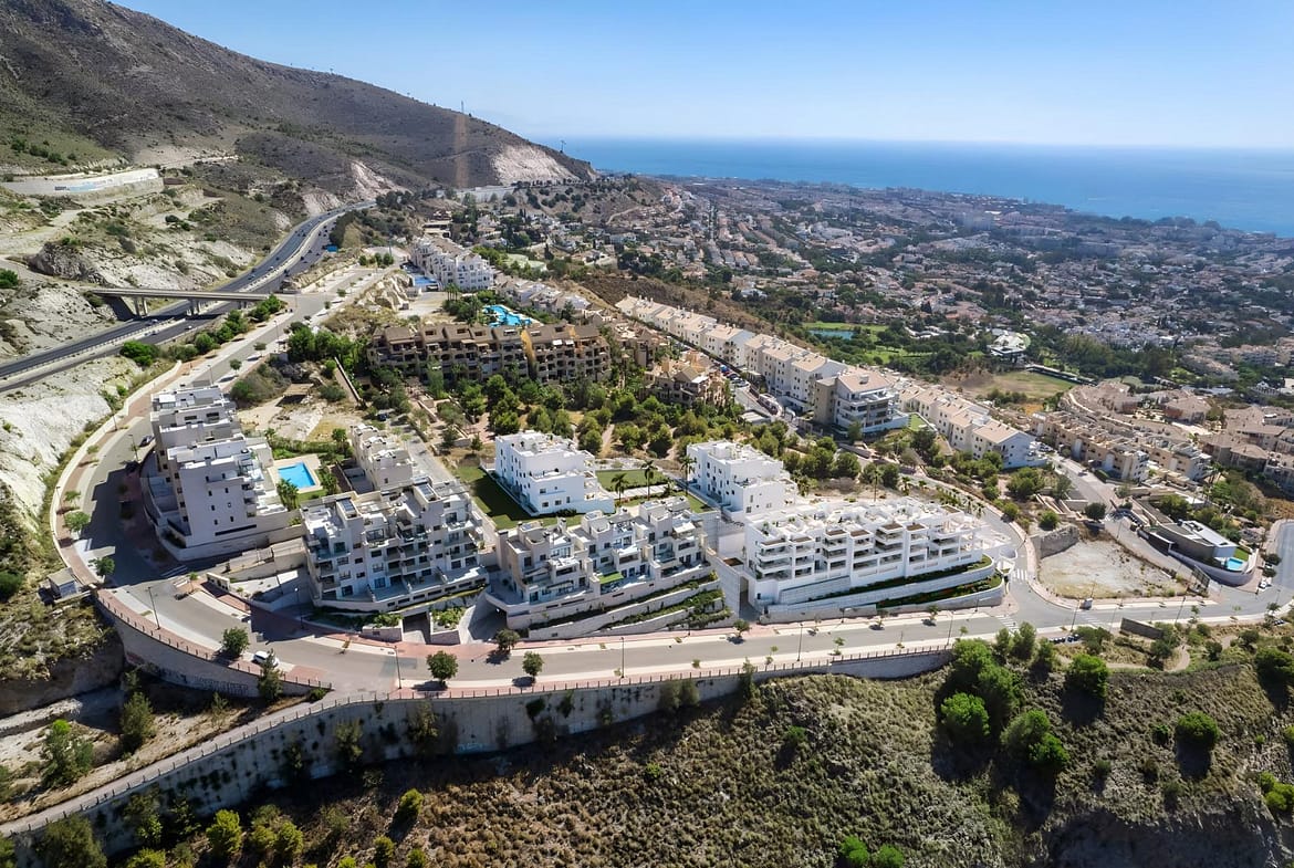 Exclusive private urbanisation, with a privileged location in Benalmádena. Due to its elevated location on the slope of the land, each and every one of the 2 and 3 bedroom properties, and 2 townhouses, enjoy incredible views of the sea and the coast. Underfloor heating, aerothermics, armoured door, and lift. Large terraces, bright penthouses and townhouses with private gardens, to experience nature from every corner of your home. Spacious rooms blend into the same environment. Natural light illuminates your bedroom to start the day with the best energy and possibility and all the possibilities. Closed urbanization with communal swimming pool with saline chlorination, spacious green areas. Privileged situation in Benalmádena, less than 20 Km from Málaga and its airport. It has 20 Km of coastline, alternating small bays and cliffs with extensive sandy beaches to enjoy more than 325 days of sunshine a year. Not forgetting its golf courses and the emblematic marina Puerto Marina. The Coastal Path, which runs along the entire coastline, allows you to take long walks along the sea breeze of an infinite sea. Picturesque and traditional villages, excellent gastronomy, which make the Costa del Sol an idyllic and welcoming place for tourism or to establish your permanent residence. Make this idyllic place your own private oasis.