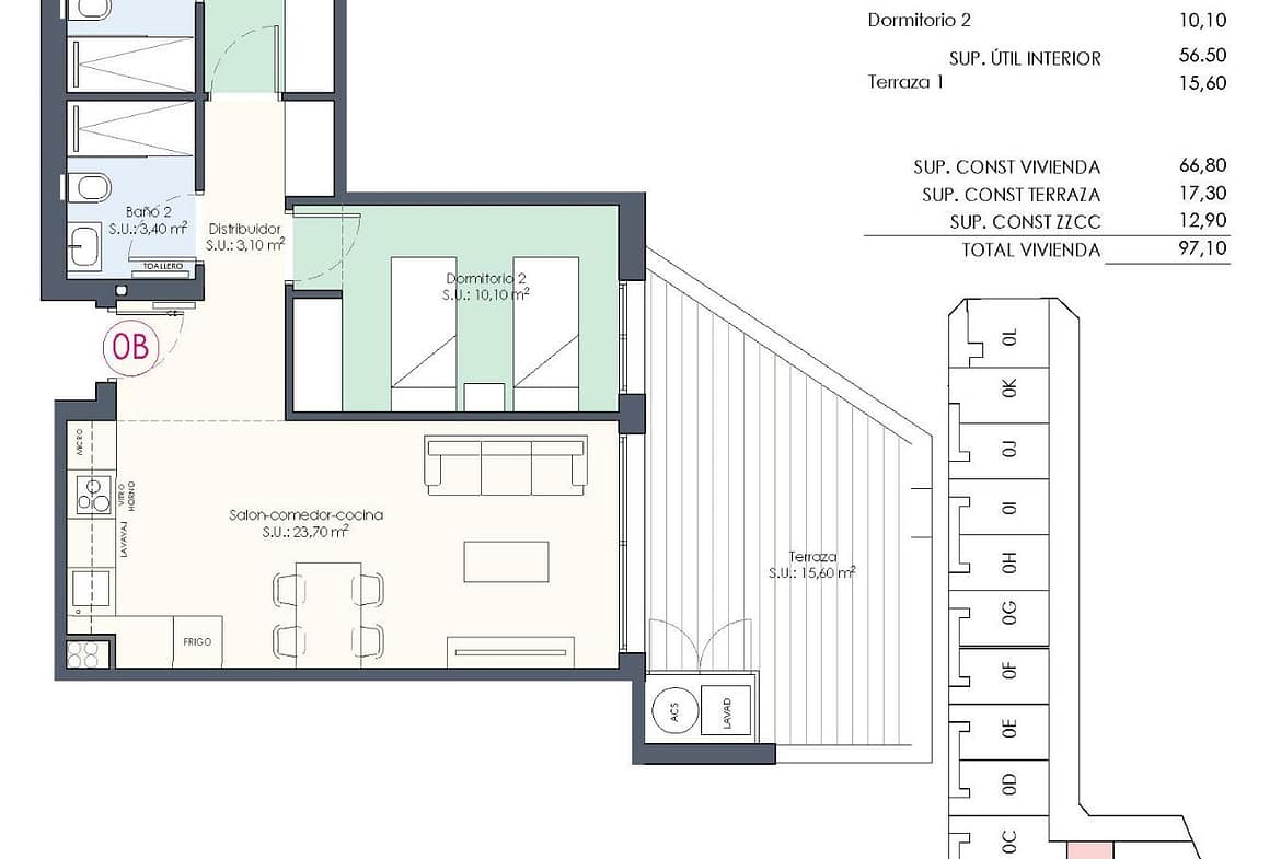 Residential made up of 35 apartments and penthouses with 2, 3 and 4 bedrooms and 2 bathrooms, open plan kitchen with the lounge area, fitted wardrobes, terraces.