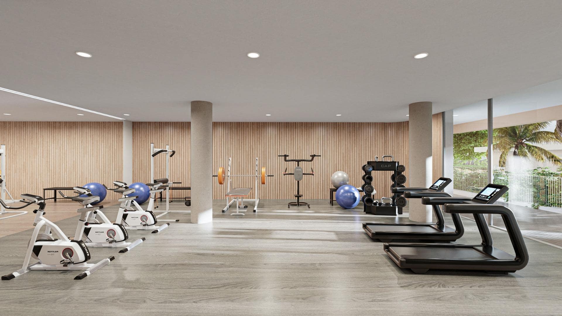 Gym and coworking space for fitness and productivity.