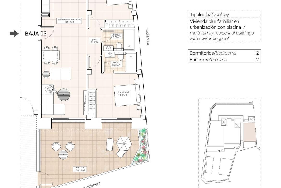 In addition, the residential has a communal swimming pool, perfect for enjoying the Mediterranean climate.