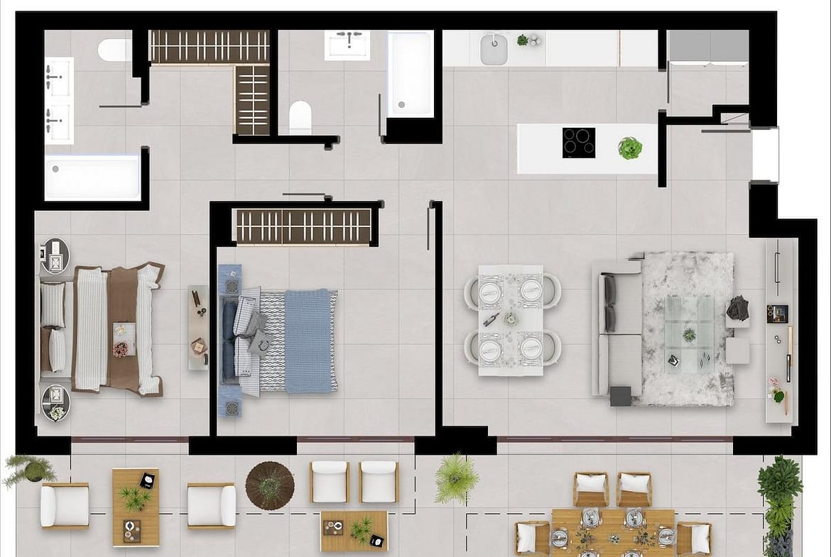 The homes are delivered fully equipped, with premium brand finishings, ready to move in. They also have an underground parking space and a storeroom