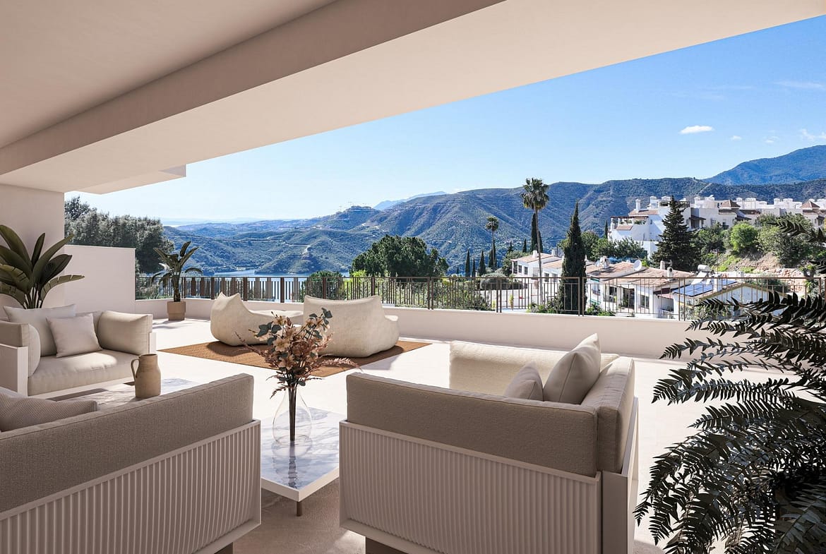 New Build Apartments Surrounded by Nature in Istán near Marbella A Unique Residential Development in Sierra de las Nieves Discover an exclusive new development located in the heart of the Sierra de las Nieves, at the foot of La Concha mountain, near the prestigious Sierra Blanca Country Club. This exceptional setting offers panoramic views over Marbella bay and the Istán reservoir, surrounded by protected natural landscapes, ancient forests and fresh mountain air. The project consists of 49 contemporary apartments distributed across small residential clusters that blend harmoniously into the mountainside. Designed for those seeking tranquility, privacy and a connection with nature, this development offers a truly unique lifestyle experience on the Costa del Sol. Modern Apartments with Mediterranean Charm The residences feature 2 and 3 bedroom layouts with open plan interiors that maximize space, light and functionality. Ground floor and middle floor apartments offer spacious terraces, while penthouses include private solariums with stunning views of the sea or forest. The architecture combines modern design with natural elements, creating a warm and elegant atmosphere that integrates perfectly with the surroundings. South east orientation ensures excellent natural light throughout the day. Exclusive Community and Natural Environment The residential complex is designed with wide internal roads, landscaped gardens, guest parking areas and scenic walking paths that wind through the natural forest. Residents can enjoy a peaceful environment while having access to a communal swimming pool surrounded by native vegetation. Istán is known as the green lung of the Costa del Sol, offering a traditional Andalusian village lifestyle with charming streets, viewpoints and local gastronomy. At the same time, it provides easy access to the vibrant lifestyle of Marbella. High Quality Features and Energy Efficiency All homes are built with high quality materials and include air conditioning by ducts, aerothermal system for hot water, LED lighting package, fully fitted kitchens with appliances, lift access, and parking space with storage room. The development also includes photovoltaic solar panels for improved energy efficiency. Excellent Location and Distances This privileged location offers both privacy and connectivity: Marbella beaches 6 km Puerto Banus marina 6 km Nueva Andalucia 6 km International schools and golf courses within 10 km Malaga Airport 65 km Your New Home on the Costa del Sol This development is ideal for nature lovers, investors and those seeking a peaceful yet well connected lifestyle near Marbella. Contact us today to receive more information or arrange a visit and secure your new home in Istán.