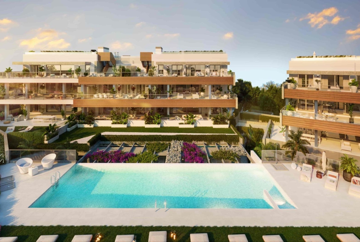 Innovative and elegant residential of 2 and 3-bedroom homes with large windows and extensive terraces to enjoy stunning sea views. Ground floor apartments with garden and private swimming pool, and penthouses with solarium with the option of incorporating a swimming pool. Residential complex with magnificent leisure and wellness services: 3 communal swimming pools, pool bar, spa with indoor pool, sauna, Turkish bath, two fully equipped gyms, two social clubs with coworking space and magnificent landscaped areas. Located in a beautiful natural enclave within Altos de los Monteros, a small oasis surrounded by nature, where you can disconnect and enjoy all the activities that the environment offers. Just 5 minutes from Marbella and its historic centre, Los Monteros beach, the Río Real golf course and the La Cañada shopping centre. Excellent communications with the motorway and the airports of Malaga and Gibraltar. Surrounded by the best golf courses, marinas, beaches, and a wide gastronomic offer, from the typical beach “chiringuitos” and tapas bars, to the most luxurious Michelin-starred restaurants. Of all the Mediterranean coastline, the beaches, towns and golf courses of the Costa del Sol are the only ones where you can enjoy more than 320 days of sunshine a year and an average annual temperature of 20º Celsius. A paradise overlooking the sea that offers much more than sun and sand, and where you can enjoy the true Mediterranean lifestyle.