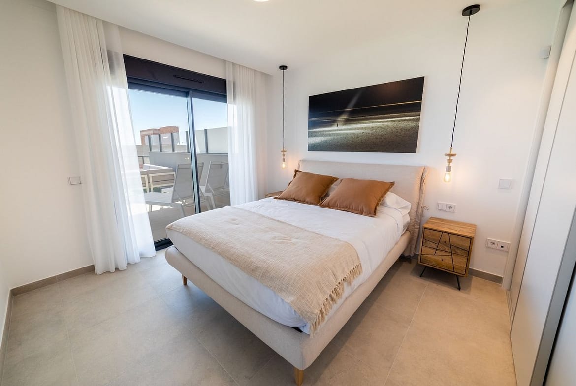 NEW APARTMENTS FOR SALE, 20 MINUTES FROM ALICANTE AND ELCHE, COSTA BLANCA New residential complex with 170 apartments in Gran Alacant, overlooking the Mediterranean Sea and direct access to the blue flag beach of El Carabassi. The apartments with 2 and 3 bedrooms and 2 bathrooms have a careful distribution and some homes enjoy beautiful views of the sea, the beach or the pool and private gardens of the urbanization. The new apartments built with excellent qualities form a beautiful residential complex with a swimming pool, private underground parking, storage room, garden areas, bio-healthy circuit, parking for bicycles and a children’s play area. The residential is located 15 minutes walk from the beach of El Carabassi. The natural environment, its magnificent location between the towns of El Altet and Santa Pola, and its dune beaches make the new Iconic apartments one of the best options when buying a home on the Costa Blanca. Developer with more than 60 years building homes in Spain Types of development: Apartment, Penthouse, Ground floor Includes: Underground parking, Storage room, Community pool, Community garden, Laundry room