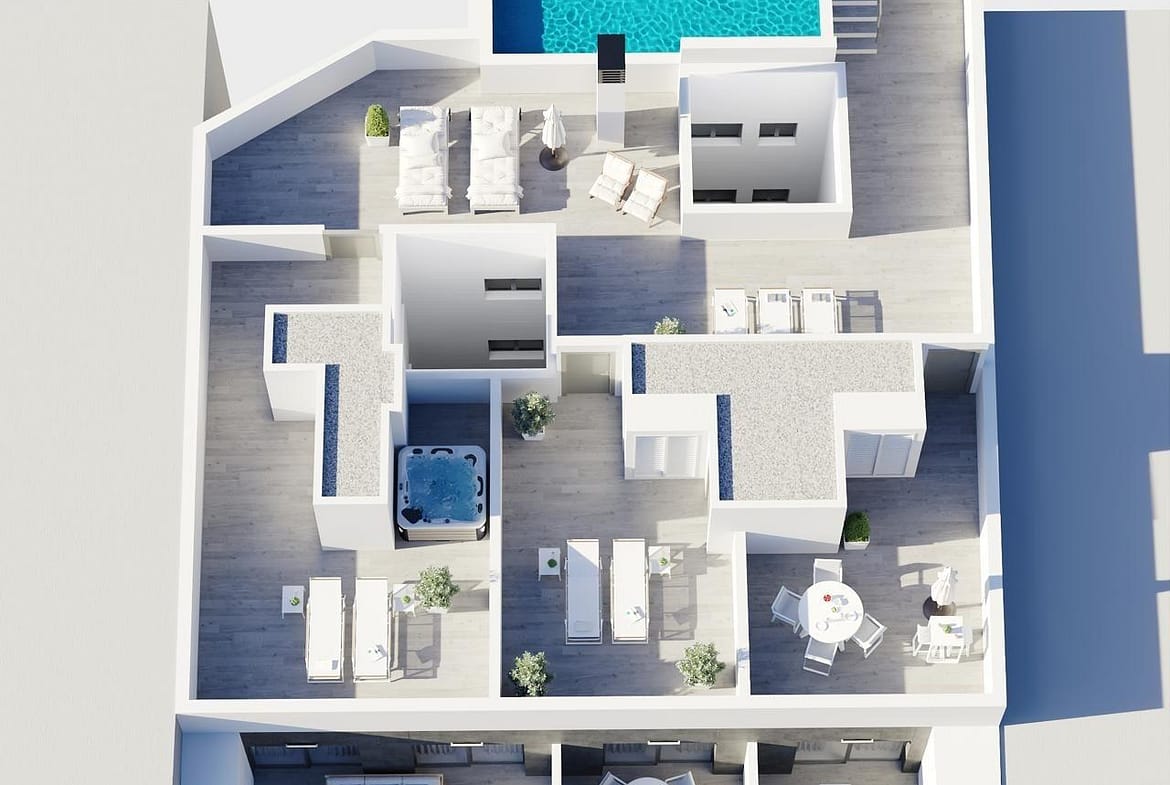 New Build Apartments in Torrevieja Just 400 m from Playa del Cura Prime Location in the Heart of Torrevieja Discover these brand new apartments and penthouses in one of the most sought after areas of Torrevieja, only 400 m from Playa del Cura and just 150 m from the seafront promenade. Located in the city centre, this vibrant neighborhood offers all essential services within walking distance, including supermarkets, shops, restaurants, cafes and public transport. Torrevieja is a well known coastal city on the Costa Blanca, famous for its mild Mediterranean climate, lively atmosphere and year round lifestyle by the sea. Modern Apartments with Spacious Layouts This exclusive new development consists of only 12 apartments and penthouses with 2 or 3 bedrooms, designed to offer comfort, functionality and contemporary style. Middle floor apartments feature generous terraces, while the penthouses enjoy an additional private solarium, ideal for sunbathing or outdoor dining. All homes include an open plan kitchen connected to the living and dining area, creating bright and welcoming interiors. Bedrooms come with fitted wardrobes, and bathrooms are fully equipped with furniture, mirrors and shower screens. Optional underground parking spaces and storage rooms are available at an extra cost. Quality Finishes and Energy Efficient Features The apartments are built with high quality materials and a strong focus on energy efficiency. Exterior aluminum carpentry includes thermal break technology and double glazing for thermal and acoustic insulation. Motorized shutters add comfort and security. Each home has pre installation for ducted air conditioning and heating, reinforced entrance doors and white lacquered interior doors. Hot water is produced through an aerothermal system, reducing energy consumption and improving sustainability. Rooftop Solarium with Communal Pool Residents can enjoy an exclusive rooftop solarium with a communal swimming pool, accessible by lift or stairs. This private area is perfect for relaxing, sunbathing and enjoying open views over the city. It provides a peaceful retreat above the lively streets of Torrevieja and adds significant value to the development. Torrevieja Lifestyle and Surroundings Torrevieja is known for its long coastline, sandy beaches and iconic salt lagoons. The Natural Park of La Mata and Torrevieja lagoons is approximately 5 km away and offers walking trails and unique landscapes. Several golf courses such as Villamartin Golf and Las Colinas Golf are within 12 to 18 km. Torrevieja Marina and port are around 1 km away. Alicante Airport is approximately 45 km and Murcia International Airport around 65 km, both with excellent European connections. Your Coastal Home Awaits Do not miss this opportunity to own a modern new build apartment close to the beach in Torrevieja. Contact us today for more information or to arrange a private viewing.