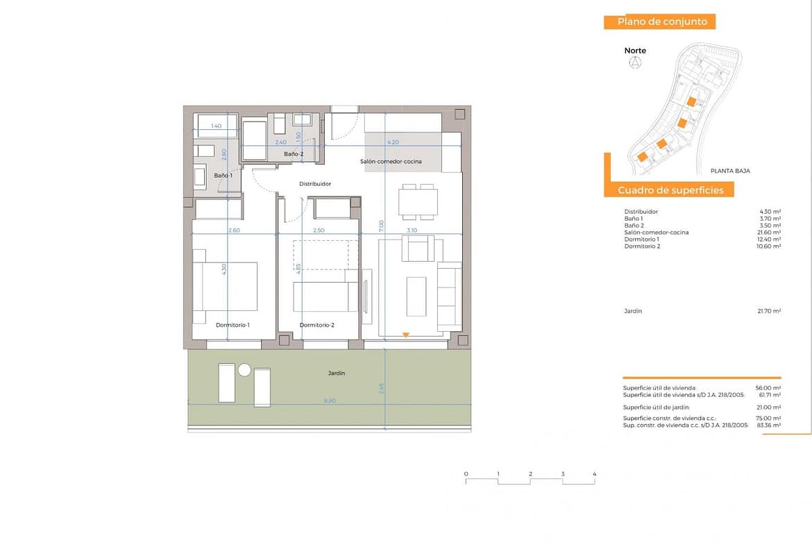 The development consists of 154 flats of 2 and 3 bedrooms, all of them with parking space and storage room.