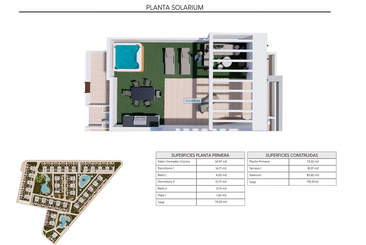 Or first floor bungalows of 178m2 with its 85m2 solarium with panoramic views of the Laguna Rosa and the Mediterranean Sea