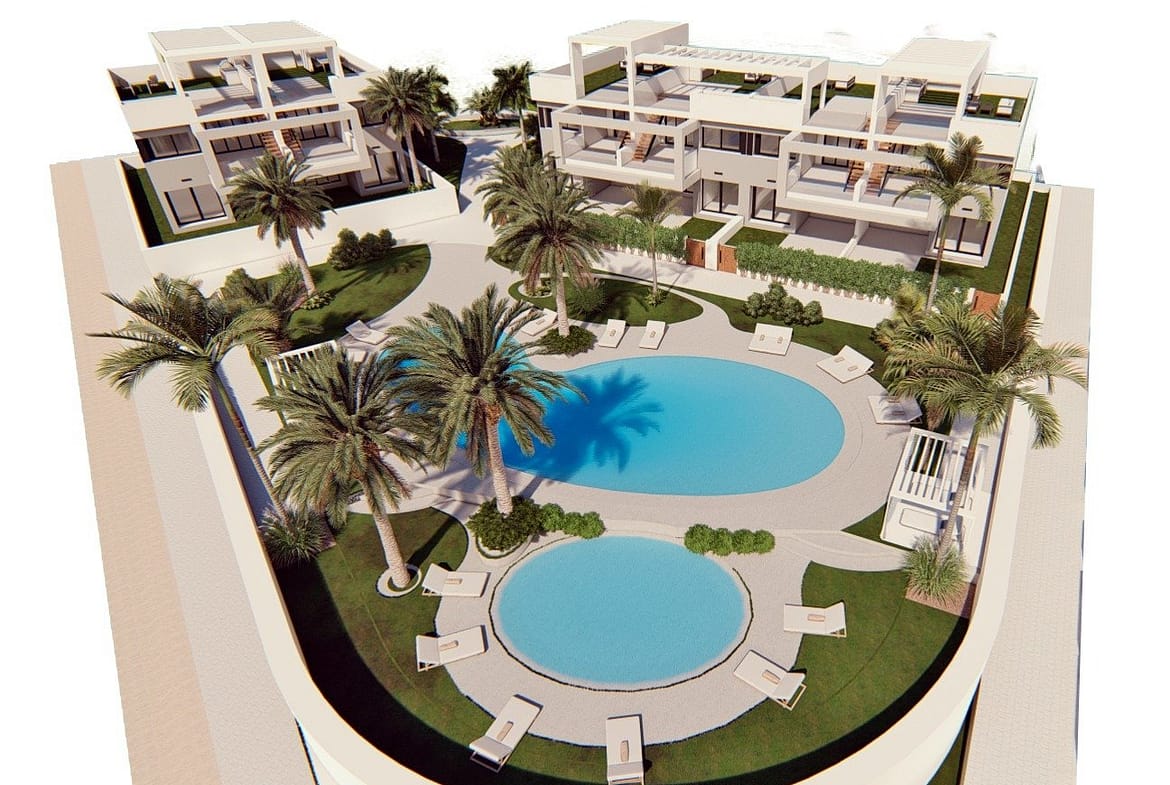 NEW BUILD RESIDENTIAL OF BUNGALOW APARTMENTS IN LOS BALCONES New Build UNIQUE residential complex in Los Balcones. Residential consist of 136 luxury bungalow apartments built with top quality materials. Each one has magical views of the Laguna Rosa de Torrevieja and the Mediterranean Sea. The houses have more than 131m2 distributed in a spacious living-dining room with an open-plan kitchen, 2 large bedrooms and 2 full bathrooms. You can choose between ground floor bungalows with their 2 large private terraces to enjoy the climate of the Costa Blanca. Or first floor bungalows of 178m2 with its 85m2 solarium with panoramic views of the Laguna Rosa and the Mediterranean Sea Complex offers idyllic landscaped common areas with 3 swimming pool areas, Jacuzzi areas, fitness area, paddle tennis court, mini golf, children’s area, charging point for electric vehicles… and much more! Its Premium facilities and green areas will allow you to enjoy with your family and friends the 320 days of sunshine that the Costa Blanca offers. Los Balcones located just outside Torrevieja with all accessible services, just 5 minutes from Playa de los Náufragos, supermarkets, the school and the La Zenia Boulevard Shopping Centre, and a minute from Torrevieja University Hospital. Complex located 40 minutes from Alicante airport and 1 hour Murcia – Corvera airport.