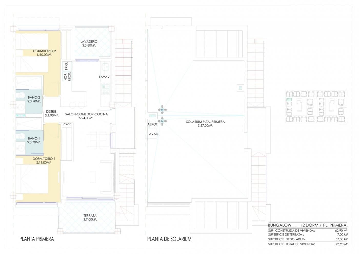NEW BUILD RESIDENTIAL OF BUNGALOW APARTMENTS IN LOS BALCONES, TORREVIEJA New Build residential complex with magnificent pink salt lake views in Los Balcones. Complex consist of 104 bungalow apartments with 2 and 3 bedrooms, top floor bungalow has private solariums with panoramic views to the salt lake and ground floors bungalows have big terraces overlooking the green area. These bungalows share beautiful green areas and 2 large swimming pools. Optional underground parking and storage spaces are available. This residential offers modern design, selected materials, apartments finished to very highest specification using only top quality materials. The Residential will be built up to a hillside, in this way the view and also the air is clear and unique quality. Los Balcones located just outside Torrevieja with all accessible services, just 5 minutes from Playa de Los Náufragos, supermarkets, the school and the La Zenia Boulevard Shopping Centre, and a minute from Torrevieja University Hospital. Furthermore you will find 4 golf courses within a short drive, including the award winning Las Colinas Golf & Country Club. Complex located 40 minutes from Alicante airport and 1 hour Murcia – Corvera airport.