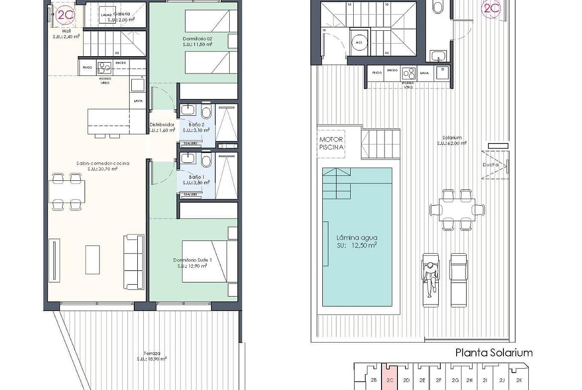 The penthouses also have a large private solarium where you can enjoy the beautiful summer sunsets.