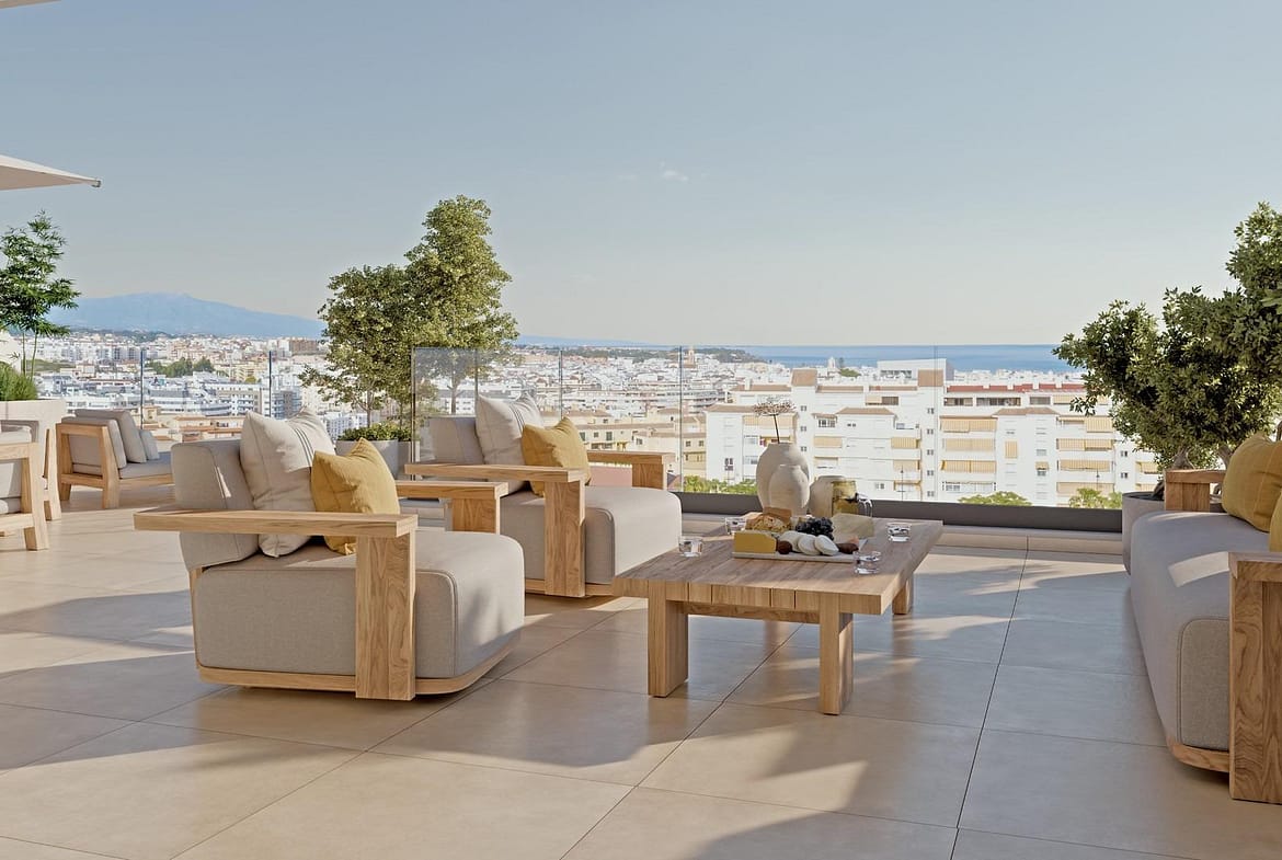 Your Luxury Oasis in Estepona on the Costa del Sol Prime Location on the Costa del Sol Nestled in the heart of Estepona, this exclusive boutique apartment complex offers an unparalleled living experience along Spain’s stunning Costa del Sol. Enjoy expansive views over the Mediterranean Sea from the upper floors and the lush, newly opened Parque Las Mesas, creating a serene environment with direct access to Estepona’s best attractions. The development is ideally located 2 km from Estepona’s historic old town, 1 km from the beach, and just 20 km from the famed Puerto Banús marina, where luxury shopping and dining experiences await. Malaga Airport is approximately 75 km away, offering convenient international access. Luxury Amenities for Resort-Style Living Designed with luxury in mind, this gated development offers residents access to a state-of-the-art Wellness Space. Here, residents can enjoy a fully equipped gym, Turkish bath, sauna, and salt-water swimming pool. The landscaped gardens are meticulously maintained and planted with native species, creating an eco-friendly oasis. Walking paths and recreational areas provide a relaxing atmosphere for residents, making it easy to unwind right at home. Estepona: The Garden of the Costa del Sol Estepona is often called the “Garden of the Costa del Sol” for its vibrant, year-round blooms and beautifully adorned streets. The old town is lined with whitewashed walls, cobbled streets, and charming plazas, all adorned with colorful flower pots. Stroll along the renovated Paseo Marítimo, a waterfront promenade featuring cafes, restaurants, and pristine beaches. Estepona Marina, with its variety of bars and restaurants, is just 3 km from the property, making it an ideal spot for weekend outings or dining with a sea view. Modern Design with an Eco-Friendly Touch This development features two- and three-bedroom apartments in low-rise buildings of up to five floors, all thoughtfully oriented to maximize natural light and park views. Each unit is designed to seamlessly connect indoor and outdoor spaces with spacious terraces and glass balustrades. The interiors emphasize modern living, with open-plan layouts and fully-fitted kitchens featuring quartz countertops and Bosch appliances. The complex integrates eco-friendly solutions, including photovoltaic panels, aerothermal systems, and efficient water fixtures for sustainability without sacrificing comfort. Explore Nearby Attractions and Scenic Destinations Estepona’s location provides easy access to the best destinations along the Costa del Sol. The glamorous Puerto Banús is a short 20-minute drive, and the historic charm of Marbella is just 25 km away. The development is also within a short drive of some of Europe’s most acclaimed golf courses, including Estepona Golf Club (7 km) and Finca Cortesín (13 km), making it an ideal spot for golf enthusiasts. Sustainable, Stylish Living in Estepona This exclusive development in Estepona offers the best of Costa del Sol living, from luxurious resort-style amenities to a sustainable lifestyle. Its prime location, combined with eco-conscious design and contemporary elegance, make it an exceptional choice for those looking to invest in a luxurious future. Discover a harmonious blend of style, sustainability, and stunning Mediterranean surroundings – your new home awaits.