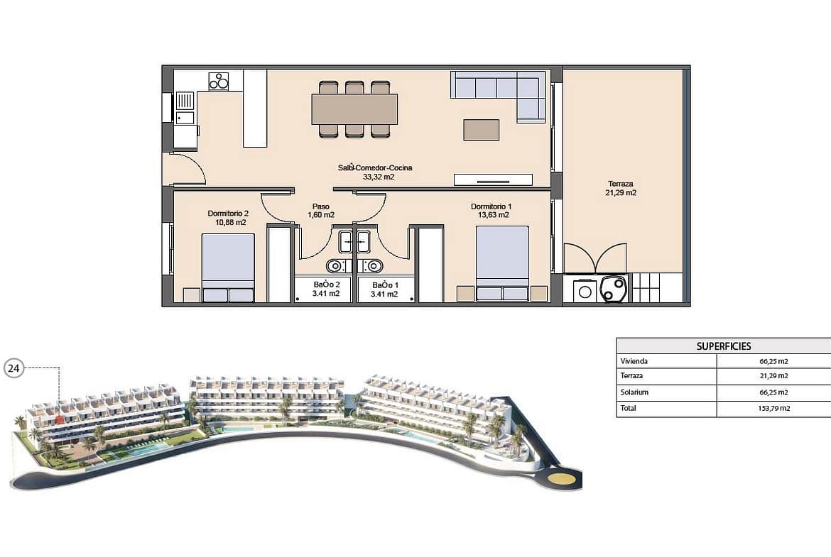 Discover a unique and luxurious new development in Finestrat, Alicante, offering an exclusive lifestyle on the Costa Blanca. This gated residential complex features 99 modern apartments with 2 bedrooms and 2 bathrooms, just 2.3 km from the beaches of Benidorm, with breathtaking views of the Mediterranean Sea and the city skyline.