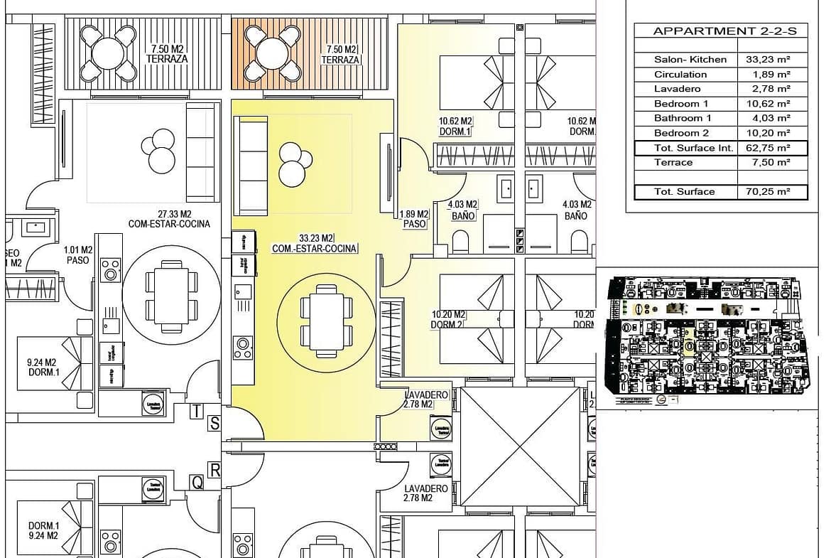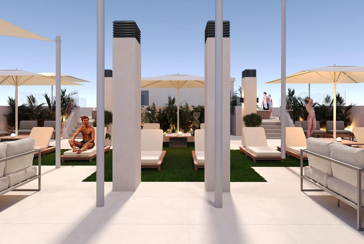 Modern New Build Apartments in the Center of San Miguel de Salinas Contemporary Living in a Healthy Mediterranean Environment Located in the charming town of San Miguel de Salinas, just 10 km from the Mediterranean Sea, this new residential development offers the perfect balance between modern comfort and natural surroundings. The area is well known for its nearby salt lakes and exceptional microclimate, considered one of the healthiest in Europe. This peaceful yet vibrant town allows residents to enjoy the authentic Mediterranean lifestyle while being within walking distance of shops, restaurants, supermarkets and all essential services. San Miguel de Salinas sits slightly inland on the Costa Blanca South, offering open views, fresh air and easy access to beaches, golf courses and shopping areas. Stylish Apartments Designed for Comfort and Efficiency The project consists of two modern buildings separated by a landscaped communal garden area. A total of 56 contemporary apartments are available with 1, 2 or 3 bedrooms, each featuring a private terrace. Every home has been designed with comfort, aesthetics and energy efficiency in mind, using high quality materials and modern insulation systems. Each apartment includes: Armored entrance door Bathrooms with vanity units Pre installation of ducted air conditioning Energy certificate rating A The layout and orientation of the homes ensure natural light throughout the day, creating bright and welcoming interiors ideal for both permanent living and holiday use. Exceptional Communal Areas for Relaxation and Social Life The ground floor communal space is designed as the social heart of the development, surrounded by landscaped gardens, seating areas, bicycle parking and a children’s playground. It is an ideal meeting point for residents of all ages. On the rooftop, an impressive 350 m2 leisure area awaits. This space includes a 70 m2 swimming pool with a separate children’s splash area, pergolas, sun loungers and shaded areas, allowing residents to relax while enjoying panoramic views. The rooftop is easily accessible by one of the three lifts and includes sanitary facilities for added comfort. Excellent Location Close to Key Points of Interest Mediterranean beaches 10 km Zenia Boulevard Shopping Center 9 km Villamartin Golf 6 km Las Colinas Golf 8 km Torrevieja Marina 12 km Alicante Airport 60 km Murcia Corvera Airport 55 km A Smart Investment in Costa Blanca South This residential complex combines modern architecture, quality finishes and a prime central location, making it an excellent choice for living, holiday enjoyment or rental investment. Contact us today for more information or to arrange a visit to these modern apartments in San Miguel de Salinas.