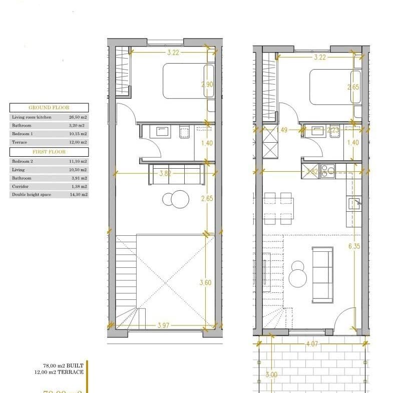 7 townhouses of 2 and 3 bedrooms with access to a communal swimming pool.