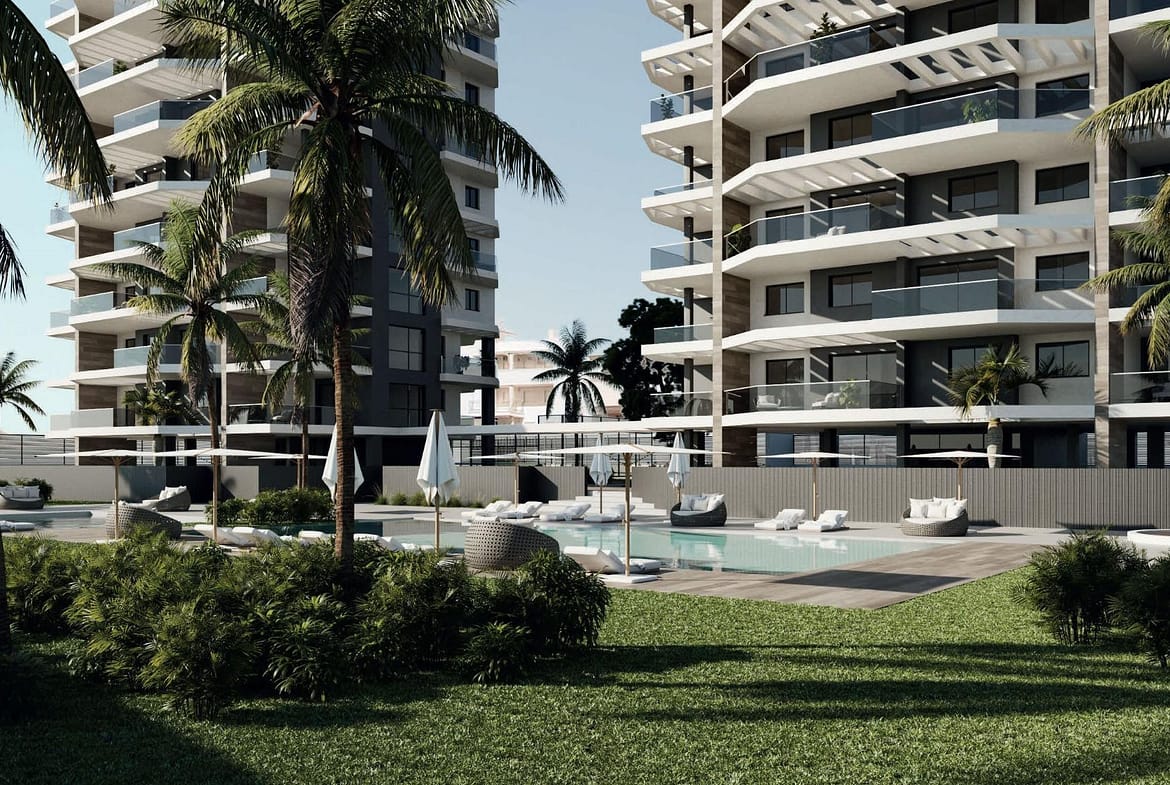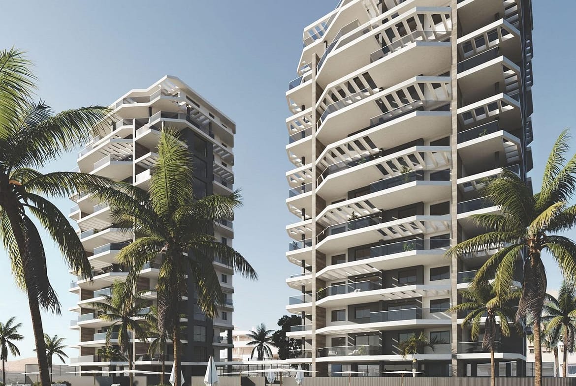 NEW BUILD APARTMENTS IN CALPE New Build residential complex of 2 and 3 bedrooms apartments with large terraces in Calpe. Two towers of 12 floors with beautiful apartments with views of the sea and the salt lake of Calpe. A light-filled house, in harmony with nature, with an open plan kitchen with living room, fitted wardrobes, spacious terraces and sea views. Each apartment has underground parking space. Large common area with 2 large swimming pools, one of them with a beach-type entrance, Sun lounger area with artificial grass, Children’s play area, Paddle tennis court, Bicycle parking area, Garden areas. Calpe enjoys a privileged microclimate while the residential located just 200 metres from El Arenal Beach. An ideal spot to revel in the peace, quiet and blue of the sea. With your loved ones, check out everything it has to offer: underwater activities where you can discover the Mediterranean’s flora and fauna while practising all kinds of water sports at international schools. Calpe, one of the towns of La Marina Alta, lies on the northern coast of the province of Alicante, surrounded by the towns of Altea, Benidorm, Teulada-Moraira, Benissa. Calpe has a wonderful mixture of old Valencian culture and modern tourist facilities. It is a great base from which to explore the local area or enjoy the many local beaches. Calpe alone has three of the most beautiful sandy beaches on the coast. Calpe also has two Sailing Clubs: Real Club Náutico de Calpe and Club Náutico de Puerto Blanco. Fishing village of Calpe now transformed into a tourist magnet, the town sits in an ideal location, easily accessed by the A7 motorway and the N332 that runs from Valencia to Alicante; its approximately 1 hour drive from the airport at Alicante and 1,5 hours to Valencias airport.