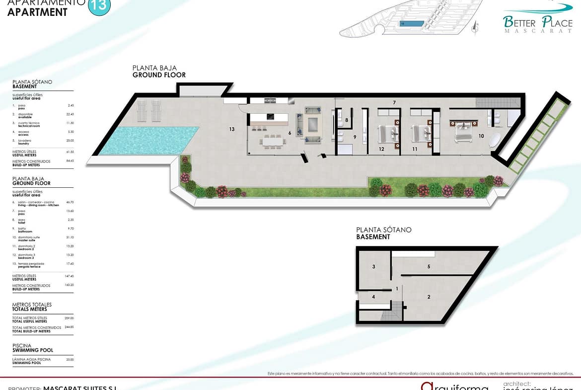Luxury beachfront apartments and villas in Mascarat, Calpe: Mediterranean living redefined Exclusive new-build development with sea views near the port of Mascarat, Calpe Discover a new level of coastal luxury with this exceptional property development located next to the picturesque port of Mascarat, between Calpe and Altea on the Costa Blanca. This exclusive project consists of 4 designer villas, 2 penthouses and 8 elegant flats, all with private pools and panoramic views of the Mediterranean Sea and the lively marina. Just 400 metres from the coast, this unique development combines modern architecture, top-quality finishes and an unbeatable location to enjoy an extraordinary lifestyle. Privileged location with excellent connections and services Strategically located just 55 km from Alicante International Airport, the development is easily accessible by car in less than 50 minutes. The picturesque marina of Mascarat is just 350 metres away, while the nearest supermarket is only 1.1 km from the residence. The town centres of Calpe and Altea, known for their historic charm, restaurants, boutiques and cultural events, are just a few minutes away. Golf lovers will find the famous Altea Golf Club just 8 km away, and the prestigious Marina Greenwich yacht club is practically on the doorstep. Elegant apartments with private pool and sea views The development offers 6 exclusive apartments, each with spacious terraces, beautiful gardens and a private pool. All apartments have three bedrooms, two bathrooms and an additional guest toilet. All properties have two allocated parking spaces in the secure underground garage, as well as access to a large semi-Olympic communal swimming pool and a panoramic funicular railway connecting the different levels of the community. Each apartment has a basement area with a laundry room and storage room connected to the property. Wonderful duplex penthouses Gems in the heights, with large terraces, private access via a private lift and all the comforts of a villa, but with the magic of the most impressive panoramic views. They have 4 bedrooms, 3 bathrooms and a guest toilet. Private swimming pool and basement space with laundry room and storage room and access to the property from the private lift. Designer villas with premium features and total privacy The 4 luxurious villas have four bedrooms, three bathrooms spread over 2 floors, with open and bright interiors that flow effortlessly into spacious outdoor areas. Each villa has a lift and private swimming pool, its own garage and access to the shared resort-style facilities. High-quality finishes and architectural attention to detail ensure that each home offers maximum comfort, elegance and privacy. High-end specifications and home automation technology Entrance door with reinforced security Lacquered aluminium exterior carpentry with thermal break Motorised blackout blinds with home automation control Designer kitchens with Silestone worktops and integrated appliances Aerothermal underfloor heating and ducted air conditioning Home automation for lighting, air conditioning, shading and leak detection Two private parking spaces per unit Experience the Mediterranean lifestyle in Calpe Experience unique moments by the sea, with unrivalled views and access to one of the most beautiful marinas on the Costa Blanca. Whether as a permanent residence, a holiday retreat or an investment, this development offers an exclusive combination of luxury, nature and lifestyle. Contact us today to arrange a private viewing and secure your dream home by the sea.