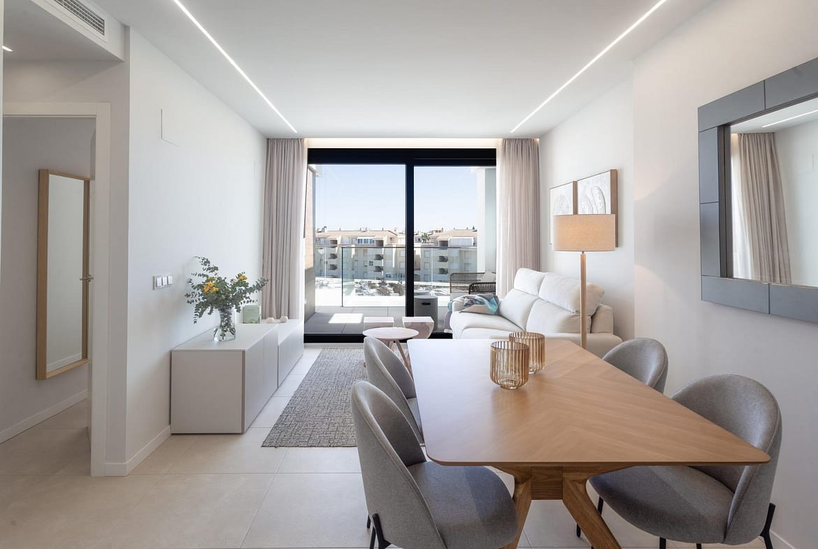 MEDITERRANEAN HOUSING A FEW METERS FROM THE SEA Exclusive complex of Mediterranean construction a few meters from the sea. On the beachfront, in front of L´Estanyo beach (7 km from the town center). Apartments and penthouses with two and three bedrooms, all with sea views. Magnificent common areas with a large garden area and two swimming pools, one for children. In an unbeatable location, in the area known as L´Estanyo that gives its name to its beach, with calm waters, an extensive area of ​​golden sand surrounded by all facilities and services, as well as leisure and restaurant venues.