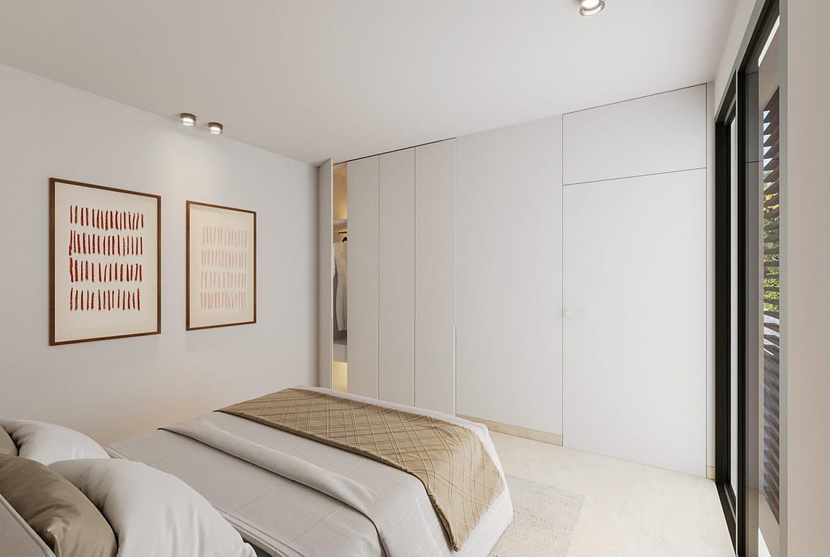 Optional features: Hot tub on terrace, charging point for electric cars Photovoltaic panels (especially efficient in type 2 and 3). Type 1 apartments: Erase sliding panel between bedroom and living room. Type 2 apartments: Staircase from English patio to ground floor Type 3 apartments: Window from upper bedroom to living room.
