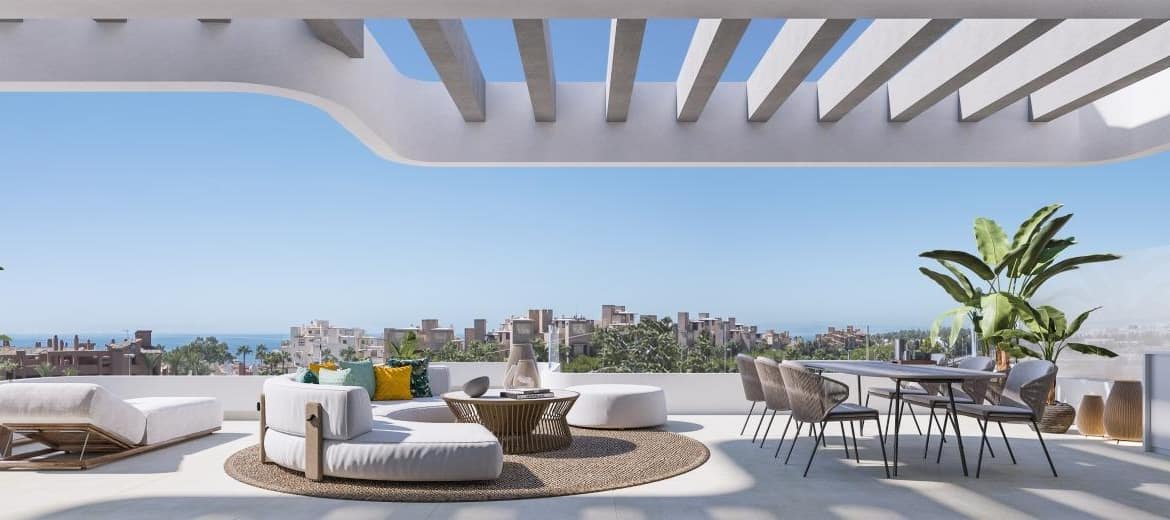 New Build residential complex is characterised by its excellent travel links, as it’s only 5 minutes by car from Estepona, 10 minutes from Puerto Banús and 20 from Marbella.