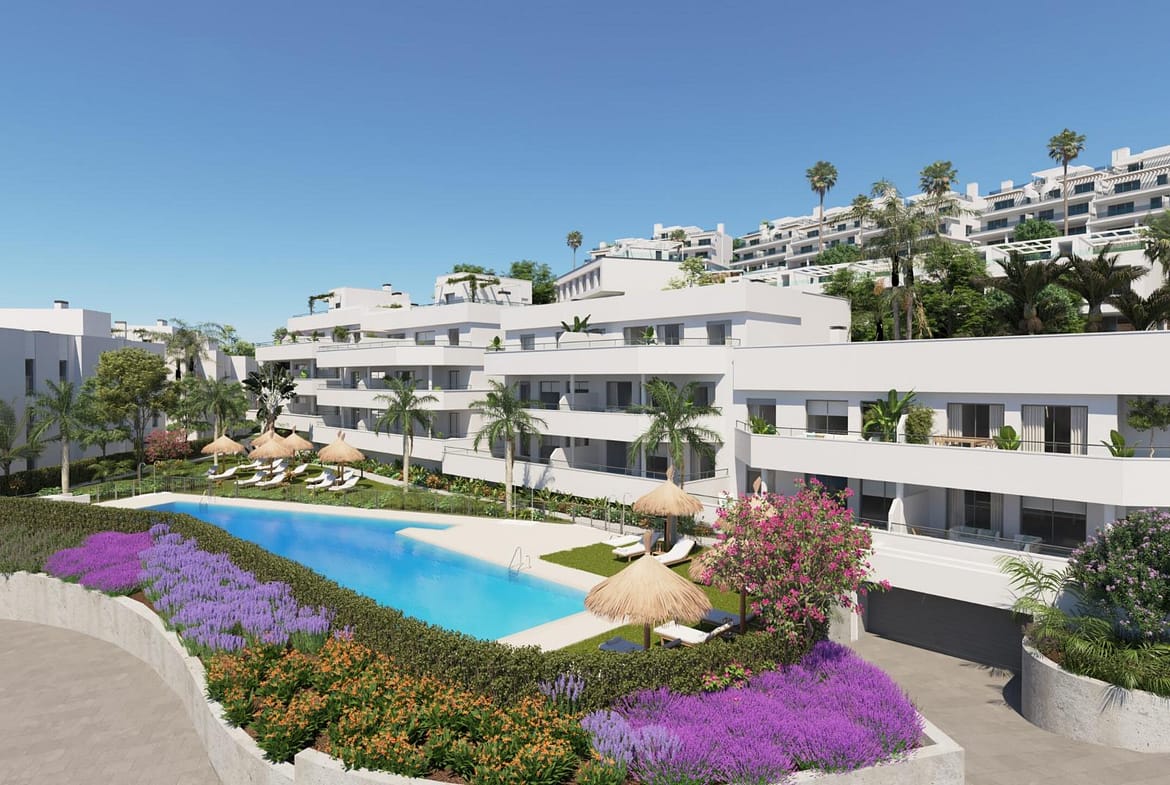 NEW BUILD RESIDENTIAL COMPLEX NEAR ESTEPONA New Build an exclusive development of apartments and townhouses located in the privileged setting of Estepona’s Golden Mile. Modern properties with 2 and 3 bedrooms enjoy spacious southwest facing terraces. This development combines quality finishes, spaciousness in interior and exterior spaces and sustainability, as it has been awarded the DOMUM seal of approval. Its avant-garde architecture is combined with its communal areas equipped with an outdoor swimming pool, coworking area, equipped gymnasium, sports area, two petanque courts and cyclosenda. In addition, owners will have access to the exclusive Santa Vista Club, which offers a wide range of leisure facilities and services. The location of the development is unbeatable, being within walking distance of the charming village of Cancelada and close to several golf courses. Situated in a privileged location, next to Estepona, just a few minutes from the beach and close to golf courses. Only 10 minutes from Marbella, and 45 minutes from Malaga International Airport. You can enjoy a real quality of life, with an average annual temperature of 20º and more than 320 days of sunshine a year. You will enjoy a wide variety of golf courses, kilometres of tranquil coastline, sun, nature, and the gastronomy of the area, from its international restaurants to its welcoming local cuisine. It perfectly combines the tradition of its cobbled streets of whitewashed houses and patios with their pots of colourful flowers, with modernity and the best leisure facilities on the Costa del Sol. It boasts a privileged location between the sea and the mountains, making it one of the most attractive tourist destinations in the province.