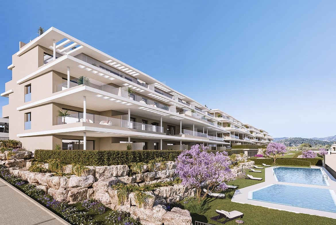 NEW BUILD RESIDENTIAL COMPLEX IN ESTEPONA A project that overlooks the sea and the mountains and whose architecture blends in with the surroundings to create a habitat of its own, where the sun and the Mediterranean mark the passage of time Complex consist of 2 and 3 bedrooms apartments with large terraces, penthouses and ground floor apartments with a garden. Amongst the very complete communal facilities a special mention should be made of its two outdoor swimming pools, its coworking space, fully equipped gymnasium and sauna with shower area. Residential located in Estepona, one of the most attractive corners of the Costa del Sol. The town has become one of the most sought-after spots on the Costa del Sol, thanks to its quality of life and its wide range of leisure and lifestyle activities. Yet, it remains true to its roots and is full of Andalucian charm. An abundance of high quality Golf Clubs in the area, justify why this is known as the “Costa del Golf.” The pectacular natural landscape is the ideal setting for a variety of outdoor sports on both land sea. In addition, its unbeatable climate, famous for 325 days of sunshine on average per year, together with its sheltered position, make this city a model of quality of life in Spain and Europe. Residential enjoys excellent accessibility to the main roads in the province, making it just 10 minutes from Puerto Banus and less than 45 minutes from Malaga airport. The quality of the beaches, their services and fantastic accessibility have been acknowledged with a record number of blue flags.