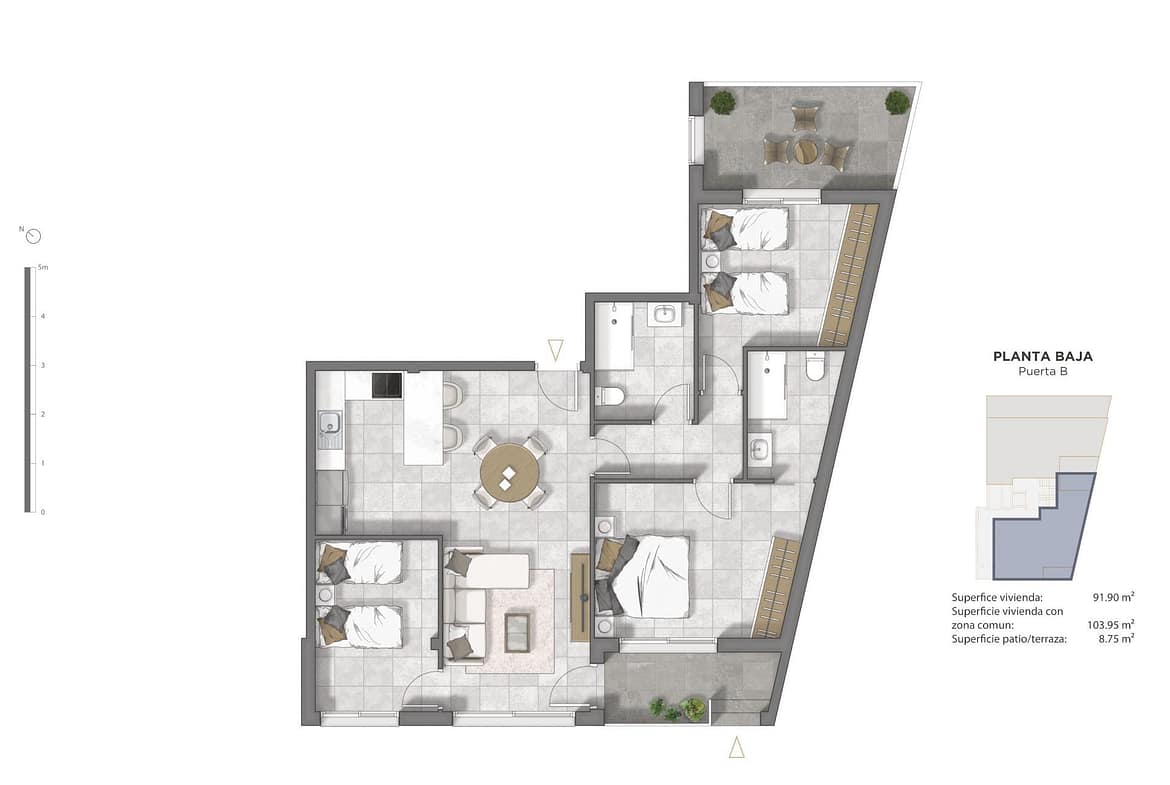 New Development Apartments in Central Guardamar del Segura, Costa Blanca Prime Location Near the Beach Discover this exceptional new-build residential complex located in the heart of Guardamar del Segura, a charming coastal town renowned for its natural dunes, pine forests, and golden sandy beaches. Ideally situated just 1 km from the beach and within walking distance to shops, restaurants, supermarkets, and leisure services, this project offers the perfect balance of convenience and Mediterranean lifestyle. Stylish Homes Designed for Comfort This modern development consists of 2 and 3-bedroom apartments with 2 bathrooms (including one en-suite). Buyers can choose between ground-floor units with terrace and patio, middle-floor apartments with terrace, or penthouses with private solarium, ideal for enjoying the sun and sea breeze year-round. Each property includes an open-plan kitchen integrated with a spacious living room, fitted wardrobes, and a private rooftop storage room. Optional parking spaces on the ground floor are available for added convenience. Premium Qualities and Energy Efficiency Designed to offer modern comfort and efficiency, the homes include high-quality finishes: Fully equipped bathrooms with vanity unit, mirror, and screens Security reinforced entrance door Aerothermal hot-water system Double-glazed windows with thermal break Elevator with access to all floors Beautiful Communal Spaces The complex features attractive green areas, a community swimming pool, and a communal rooftop solarium, providing residents with relaxing outdoor spaces in the sun. Enjoy the Best of Guardamar Guardamar del Segura offers 11 km of natural beaches, a marina with year-round activities, sports facilities with padel, tennis, football, and an indoor heated pool, as well as parks, markets, and cultural venues. With its laid-back coastal atmosphere and full range of services, it is an ideal location for both permanent living and holiday escapes. Key distances: Beach: 1 km Alicante-Elche Airport: 20 km La Marquesa Golf: 8 km Torrevieja Marina: 14 km Guardamar Marina: 2 km Secure Your New Home in the Costa Blanca Don’t miss the opportunity to live in one of the most desirable areas of the Costa Blanca. Contact us today to schedule a visit and discover your future home in Guardamar del Segura.
