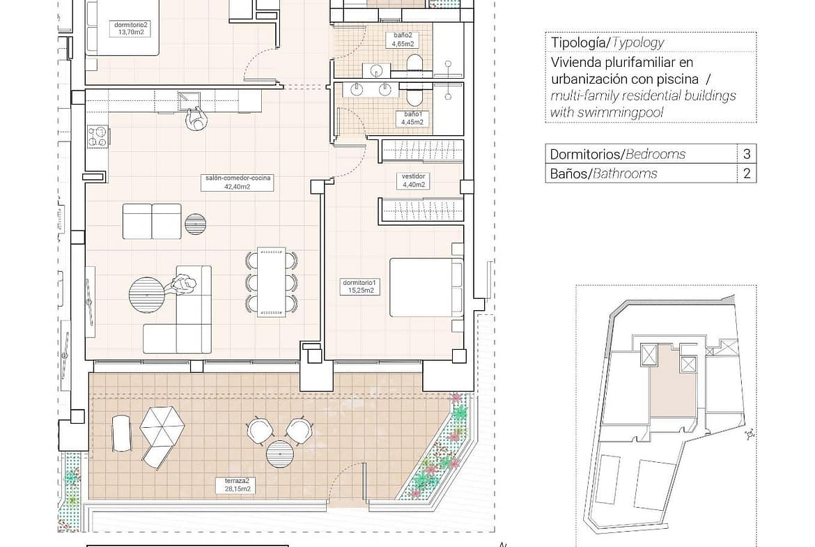 Discover this new development of flats in Hondón de las Nieves, a charming village set in a beautiful valley surrounded by olive and almond groves. This development offers 15 exclusive 2 and 3 bedroom homes, all designed to offer maximum comfort, energy efficiency and stunning views of the Vinalopó vineyards.