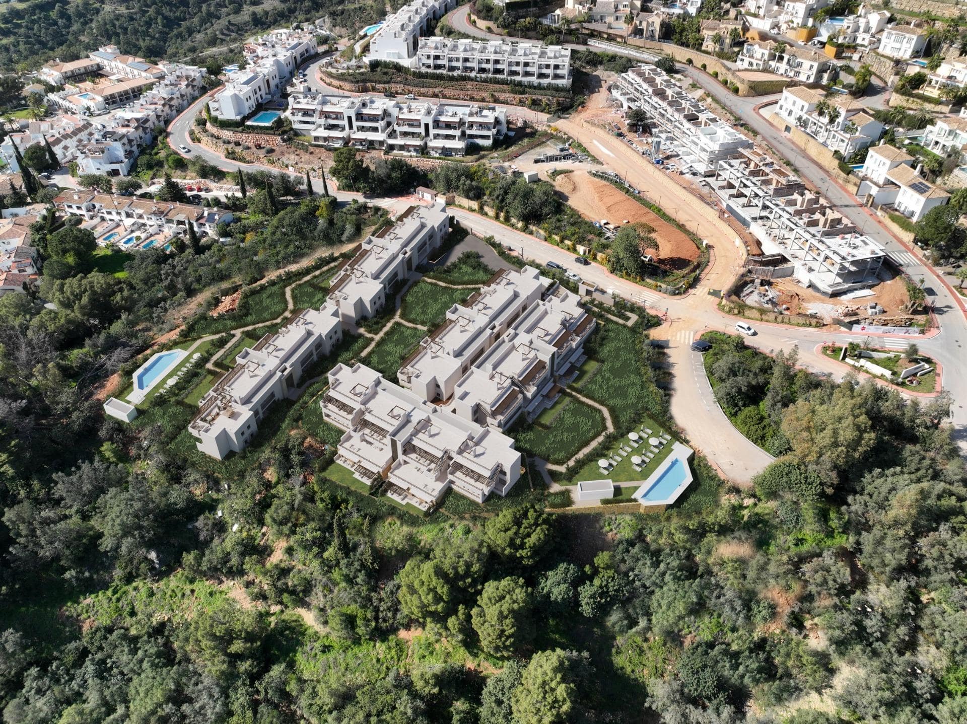 New Build Apartments Surrounded by Nature in Istán near Marbella A Unique Residential Development in Sierra de las Nieves Discover an exclusive new development located in the heart of the Sierra de las Nieves, at the foot of La Concha mountain, near the prestigious Sierra Blanca Country Club. This exceptional setting offers panoramic views over Marbella bay and the Istán reservoir, surrounded by protected natural landscapes, ancient forests and fresh mountain air. The project consists of 49 contemporary apartments distributed across small residential clusters that blend harmoniously into the mountainside. Designed for those seeking tranquility, privacy and a connection with nature, this development offers a truly unique lifestyle experience on the Costa del Sol. Modern Apartments with Mediterranean Charm The residences feature 2 and 3 bedroom layouts with open plan interiors that maximize space, light and functionality. Ground floor and middle floor apartments offer spacious terraces, while penthouses include private solariums with stunning views of the sea or forest. The architecture combines modern design with natural elements, creating a warm and elegant atmosphere that integrates perfectly with the surroundings. South east orientation ensures excellent natural light throughout the day. Exclusive Community and Natural Environment The residential complex is designed with wide internal roads, landscaped gardens, guest parking areas and scenic walking paths that wind through the natural forest. Residents can enjoy a peaceful environment while having access to a communal swimming pool surrounded by native vegetation. Istán is known as the green lung of the Costa del Sol, offering a traditional Andalusian village lifestyle with charming streets, viewpoints and local gastronomy. At the same time, it provides easy access to the vibrant lifestyle of Marbella. High Quality Features and Energy Efficiency All homes are built with high quality materials and include air conditioning by ducts, aerothermal system for hot water, LED lighting package, fully fitted kitchens with appliances, lift access, and parking space with storage room. The development also includes photovoltaic solar panels for improved energy efficiency. Excellent Location and Distances This privileged location offers both privacy and connectivity: Marbella beaches 6 km Puerto Banus marina 6 km Nueva Andalucia 6 km International schools and golf courses within 10 km Malaga Airport 65 km Your New Home on the Costa del Sol This development is ideal for nature lovers, investors and those seeking a peaceful yet well connected lifestyle near Marbella. Contact us today to receive more information or arrange a visit and secure your new home in Istán.