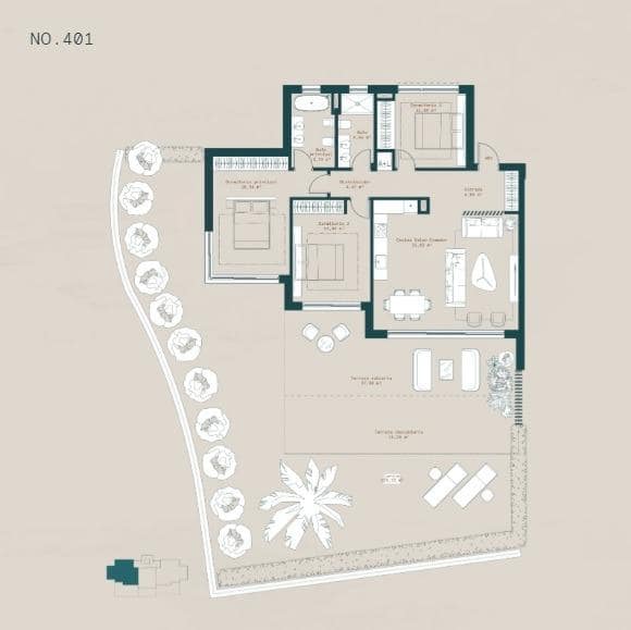 Apartments: Stylish 2 or 3-bedroom units, ranging from ground-floor residences with gardens to middle-floor options with large terraces and duplex penthouses boasting expansive, open terraces.
