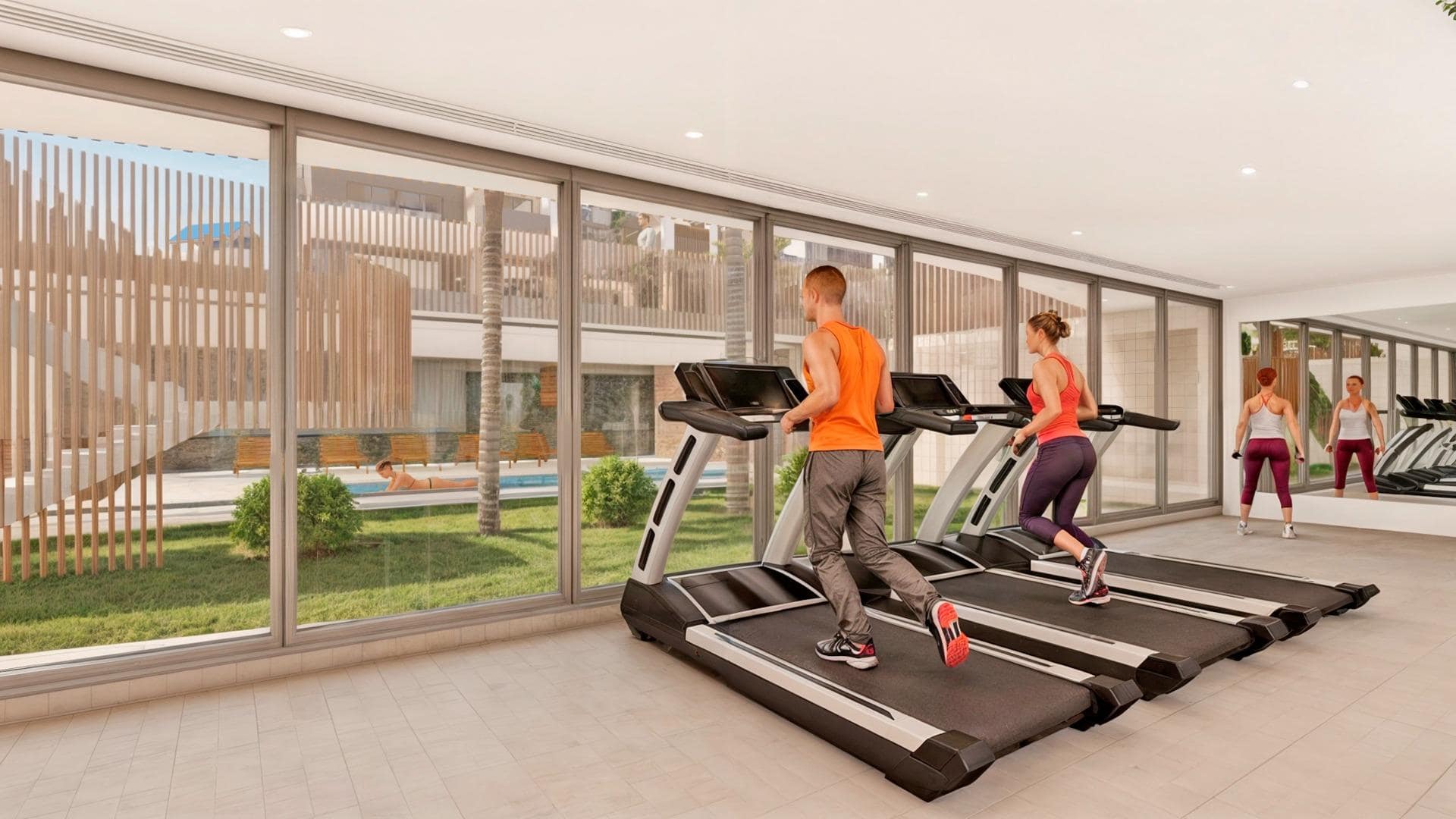 Penthouses boast private solariums with sea views and outdoor kitchens, pergolas, jacuzzis, and artificial grass.