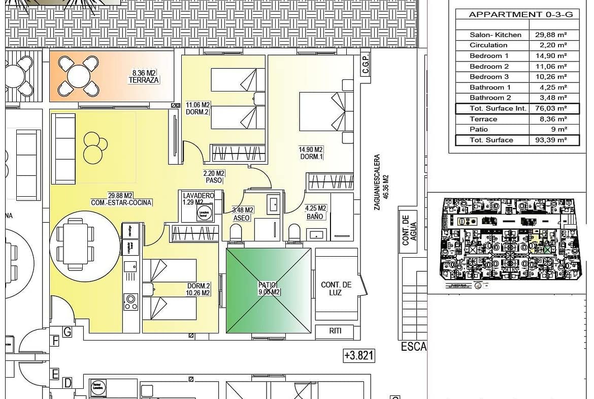 Modern New Build Apartments in the Center of San Miguel de Salinas Contemporary Living in a Healthy Mediterranean Environment Located in the charming town of San Miguel de Salinas, just 10 km from the Mediterranean Sea, this new residential development offers the perfect balance between modern comfort and natural surroundings. The area is well known for its nearby salt lakes and exceptional microclimate, considered one of the healthiest in Europe. This peaceful yet vibrant town allows residents to enjoy the authentic Mediterranean lifestyle while being within walking distance of shops, restaurants, supermarkets and all essential services. San Miguel de Salinas sits slightly inland on the Costa Blanca South, offering open views, fresh air and easy access to beaches, golf courses and shopping areas. Stylish Apartments Designed for Comfort and Efficiency The project consists of two modern buildings separated by a landscaped communal garden area. A total of 56 contemporary apartments are available with 1, 2 or 3 bedrooms, each featuring a private terrace. Every home has been designed with comfort, aesthetics and energy efficiency in mind, using high quality materials and modern insulation systems. Each apartment includes: Armored entrance door Bathrooms with vanity units Pre installation of ducted air conditioning Energy certificate rating A The layout and orientation of the homes ensure natural light throughout the day, creating bright and welcoming interiors ideal for both permanent living and holiday use. Exceptional Communal Areas for Relaxation and Social Life The ground floor communal space is designed as the social heart of the development, surrounded by landscaped gardens, seating areas, bicycle parking and a children’s playground. It is an ideal meeting point for residents of all ages. On the rooftop, an impressive 350 m2 leisure area awaits. This space includes a 70 m2 swimming pool with a separate children’s splash area, pergolas, sun loungers and shaded areas, allowing residents to relax while enjoying panoramic views. The rooftop is easily accessible by one of the three lifts and includes sanitary facilities for added comfort. Excellent Location Close to Key Points of Interest Mediterranean beaches 10 km Zenia Boulevard Shopping Center 9 km Villamartin Golf 6 km Las Colinas Golf 8 km Torrevieja Marina 12 km Alicante Airport 60 km Murcia Corvera Airport 55 km A Smart Investment in Costa Blanca South This residential complex combines modern architecture, quality finishes and a prime central location, making it an excellent choice for living, holiday enjoyment or rental investment. Contact us today for more information or to arrange a visit to these modern apartments in San Miguel de Salinas.