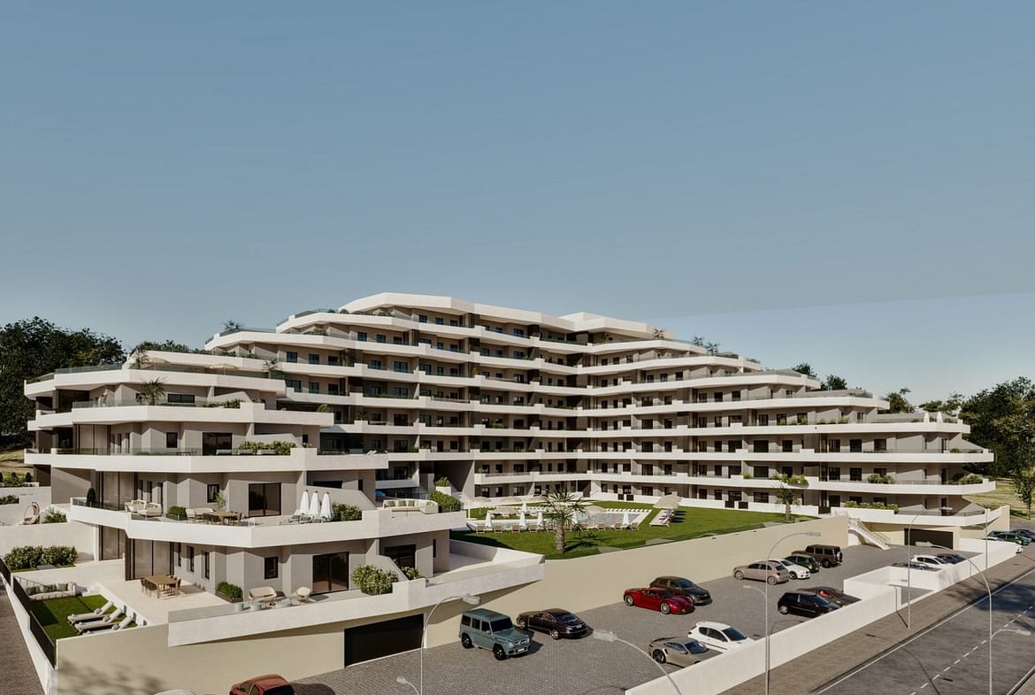 NEW BUILD RESIDENTIAL COMPLEX IN SAN MIGUEL DE SALINAS New Build residential of 165 apartments of 2 and 3 bedrooms, distributed over 7 floors. Fully enclosed residential with communal swimming pools for adults and children, green areas, playground for children and an area for adults with bio-healthy circuit, located on the Costa Blanca in San Miguel de Salinas near golf courses, beach and shopping centres. All apartments comes with parking. An option storage room at an extra cost. Quality specifications: - Fully fitted kitchen with filter group and induction hob. - Porcelanic floors. - Compact blinds. - White laminated wardrobes with mezzanine in bedrooms. - Pre-installation for split air conditioning in living room and bedroom. - Aerothermics. 70% energy saving. San Miguel de Salinas is a municipality in the Valencian Community, Spain. Located in the south of the province of Alicante, in the region of Vega Baja del Segura near the Region of Murcia. San Miguel de Salinas located close to the Las Colinas and Campoamor golf courses, offers exceptional views of the Torrevieja and La Mata lagoons. Alicante airport located 35 minutes drive away and Murcias Corvera airport is about 1 hour drive away.