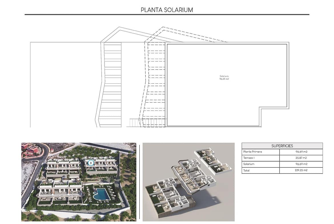 NEW BUILD RESIDENTIAL COMPLEX IN FINESTRAT New Build unique and exclusive high standing residential complex in Balcon de Finestrat. This complex of modern bungalows with 2 and 3 bedrooms, all with 2 bathrooms, open plan kitchen with the living and dining room. Top floor bungalows with private solarium and ground floor bungalows with private garden and possibility of private pool at an extra cost. Properties has loads of natural light and designer island in the kitchen. Lift in all homes. Sustainable construction with energy certificate A. Each property has private parking. Indoor Fitness Gym. Bio-healthy area for sports. Communal swimming pool. Indoor and outdoor LED lighting pack. High quality materials and brands. The properties have access to a large swimming pool and enjoy one of the best locations on the Costa Blanca. It is a great opportunity and privilege to be able to live with this environment of golf and beach, close to all amenities of all services considered one of the best places to invest. Finestrat located in the Marina Baixa region of the Costa Blanca. Benidorm is just a five-minute drive from the properties and offers all the services you would need including shops, bars, restaurants, supermarkets, banks, pharmacies and several private international schools. Close to the beaches of Levante, Poniente and Cala de Finestrat, with more than 6km in length that are among the best in Europe awarded by the European Union with Blue Flags. All leisure services such as the theme parks of Aqua Natura, Terra MĂ­tica, Terra Natura, Aqualandia and Mundomar, Sierra Cortina and Villaitana Golf courses, hiking and climbing in Puig Campana an incomparable natural setting or enjoy of nautical sports. Distance to the sea 4 km, to the airport 26 km and to the golf 1km. Complex located 40 minutes from Alicante airport.