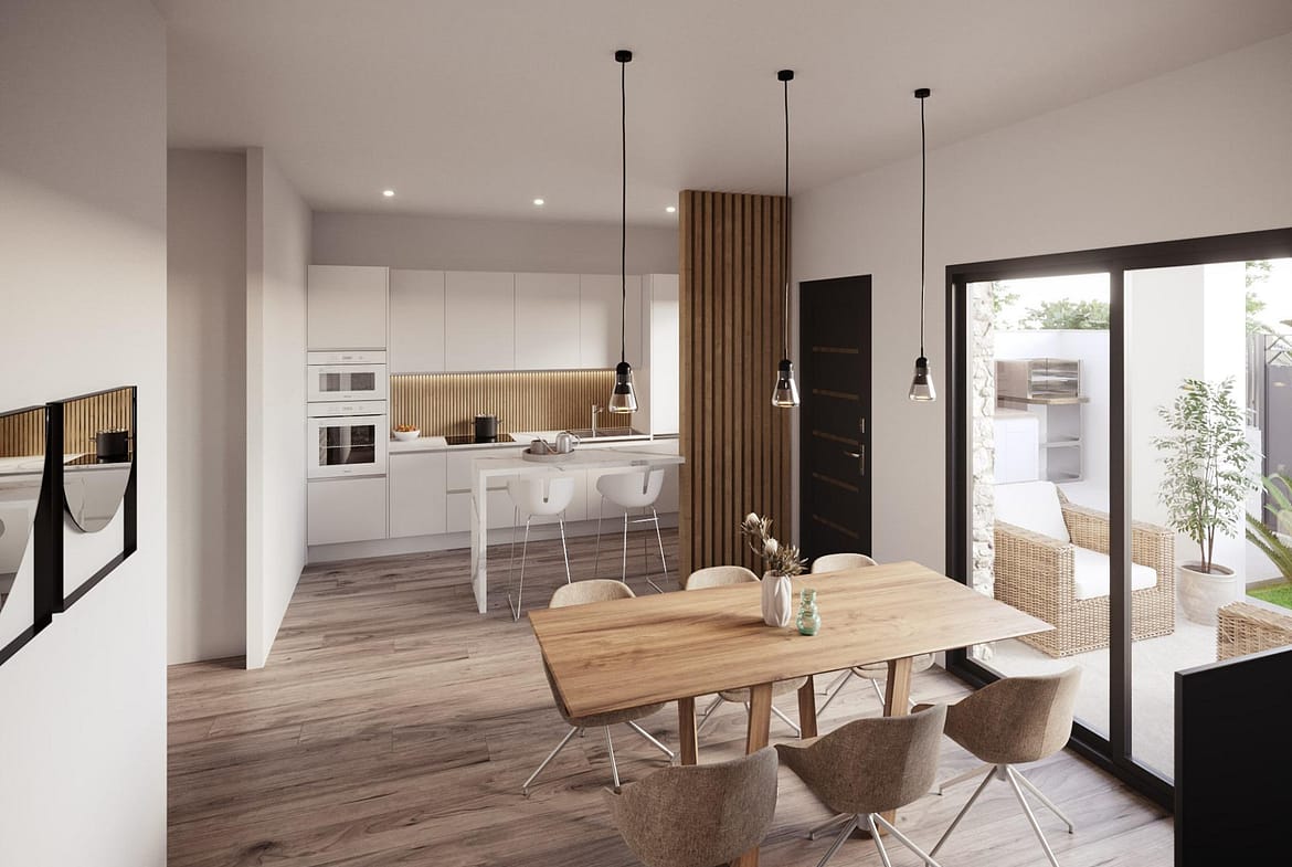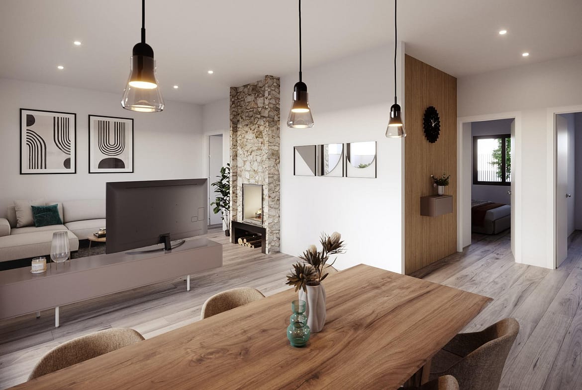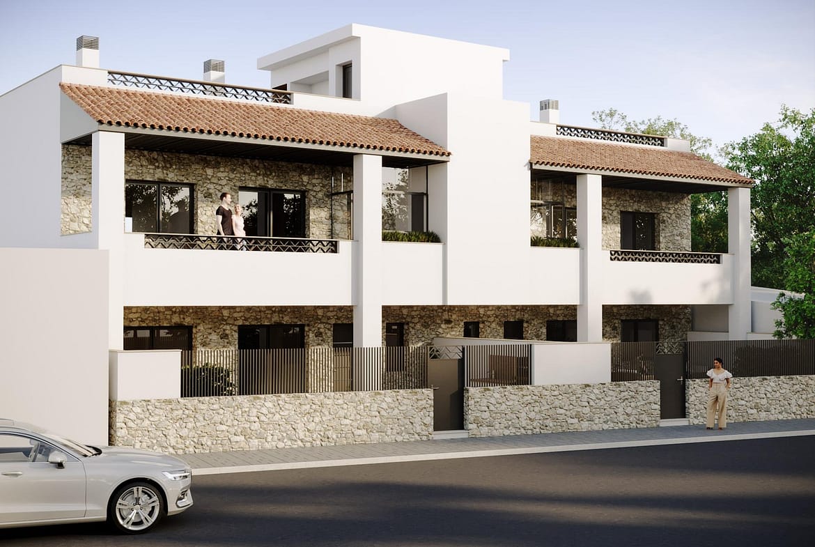 NEW BUILD BUNGALOWS IN HONDON DE LAS NIEVES New Build 4 bungalows located in Hondón de las Nieves (Alicante) All bungalows have 3 bedrooms with fitted wardrobes, 2 bathrooms, large living room, fitted kitchen and terrace. The properties are available on the ground floor with front and rear terrace/garden and on the top floor with terrace and private solarium. The first floor properties have photovoltaic panels on the roof for energy saving. The kitchens are fully furnished and finished with granite or synthetic agglomerate worktops (silestone or simular). The bathrooms are finished with high quality sanitary ware and taps with built-in cistern. These homes have pre-installation for ducted air conditioning with heat pump, forced ventilation with heat recovery, aerothermal system for domestic hot water, the most modern thermal and acoustic insulation, aluminium exterior carpentry with thermal bridge break and shutters. Hondón de las Nieves is a town in the Valencian Community, Spain. It is located in the southwest of the province of Alicante, in the region of Vinalopó Medio. The beaches and Alicante Airport are closely just 30 minutes drive away.