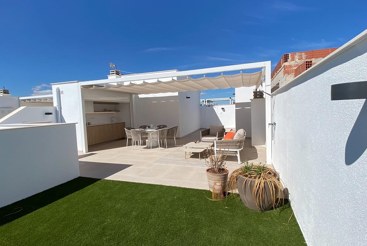 New Build Bungalow Residential Complex in Pilar de la Horadada Exclusive Modern Bungalows in Pilar de la Horadada This new development offers 16 stylish bungalows in the desirable town of Pilar de la Horadada, located in the southernmost part of Costa Blanca. Choose between 2 or 3-bedroom options, each featuring 2 bathrooms. Ground-floor units come with spacious front and rear terraces, providing direct access to the communal pool and garden, while top-floor units boast a large private rooftop solarium. Spacious Living with Modern Features Each bungalow includes a bright and open living/dining area and a fully equipped kitchen with large sliding doors that connect the indoor and outdoor spaces seamlessly. Bedrooms feature built-in wardrobes. Ducted air conditioning is installed, and the complex includes an elevator for easy access to upper floors. Private parking spaces are also included for all units. Prime Location in Pilar de la Horadada Pilar de la Horadada is a traditional Spanish town with a lively main street offering supermarkets, shops, restaurants, and bars. The beautiful beaches of Torre de la Horadada and Mil Palmeras are just 5 minutes away. The development is conveniently located 40 km from Corvera Airport (Murcia) and 55 km from Alicante Airport, making it an ideal location for both permanent living and holiday getaways.