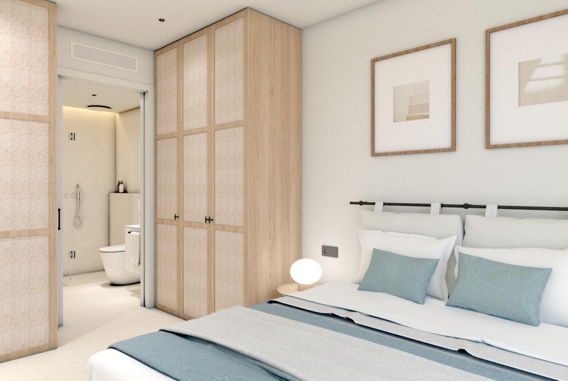 New Build residential complex of bungalow apartments with communal pool in Torre de la Horadada located 800m from the beach.