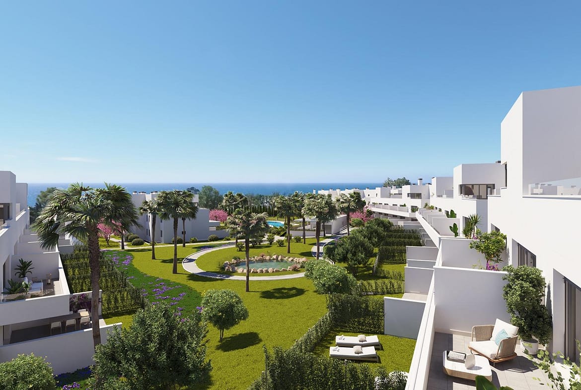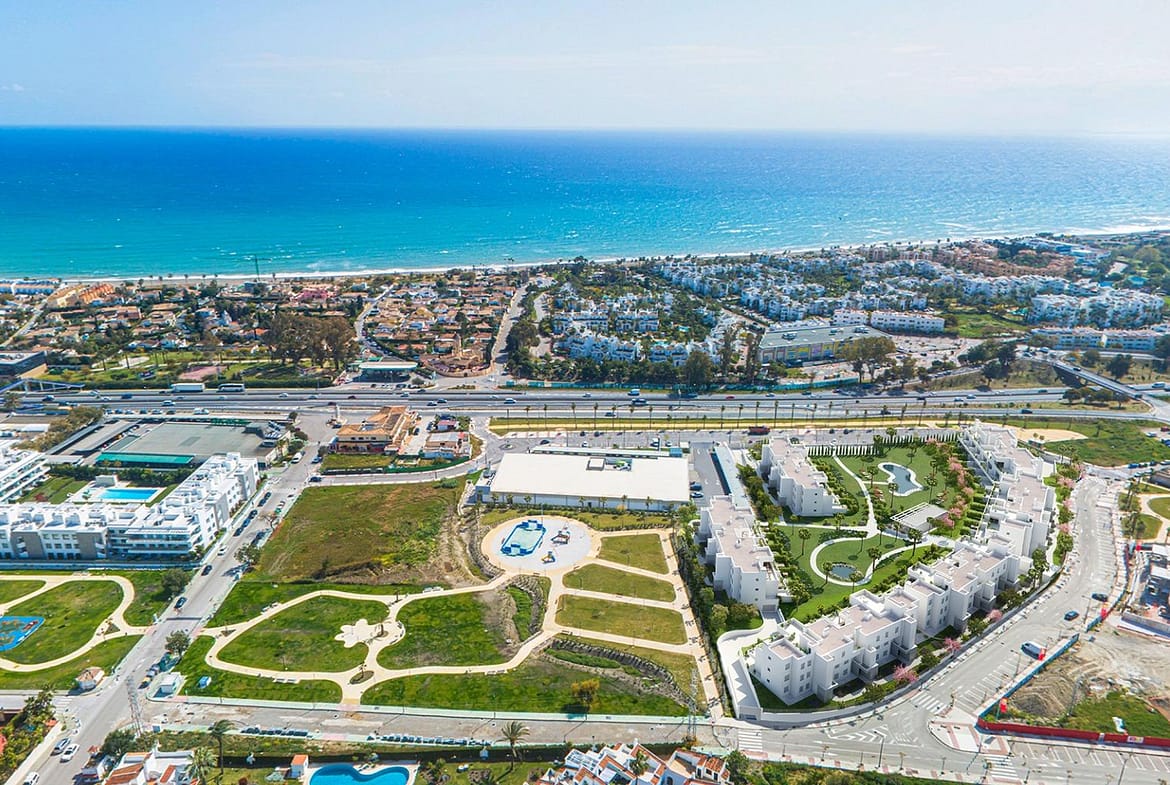 NEW BUILD RESIDENTIAL COMPLEX NEAR ESTEPONA New Build stylish and contemporary development of 95 apartments and penthouses, located in a convenient and central location on the New Golden Mile. Whether you are looking for the perfect holiday home or perhaps a new permanent residence you will be spoilt for choice with the vast array of amenities on your doorstep. The New Golden Mile offers everything from golf courses and beaches to schools, entertainment, shopping and dining. A sleek architectural design combined with open-plan interiors and modern amenities creates one of the most attractive new-build offerings on the market today, no stone has been left unturned in the design of this residential complex to create the perfect oasis for modern day living. Some of the details that have been meticulously thought of include top quality finishes, spacious interiors and terraces with sea and mountain views. In addition, the community and communal areas have also been meticulously designed, some of the features on offer include; a secure entrance, private parking and storage, large landscaped gardens, a stylish pool deck and a professionally equipped gymnasium and working/meeting area complete with café. Estepona is perfect place to enjoy the tranquillity, while you can access a wide range of outdoor sports activities, thanks to its proximity to the Estepona Golf courses and its spectacular beaches. Estepona Golf is an 18-hole course situated between Gibraltar and Puerto Banús; on the new golden mile, just 3 km from the beach and with a wide variety of services and facilities on offer locally.