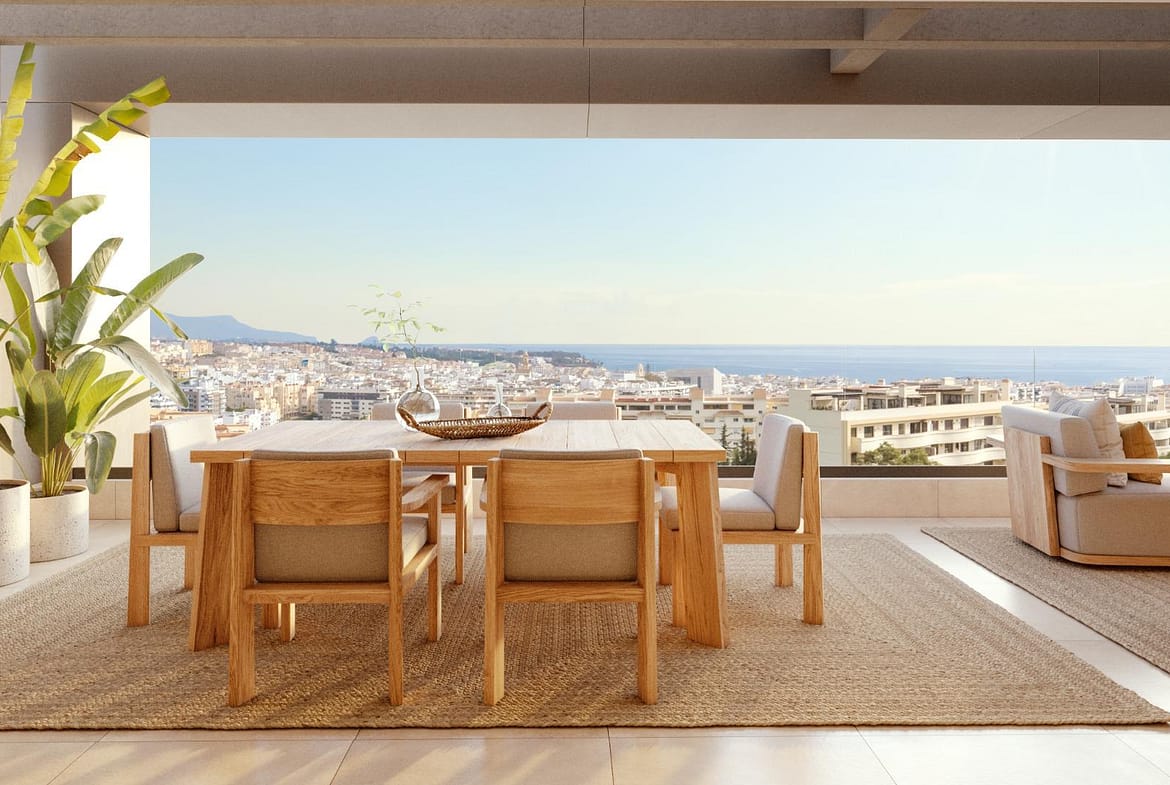 Exclusive Residential Resort in Estepona with Sea Views and Mediterranean Lifestyle Modern homes with elegant design and views of the Mediterranean This new residential complex in Estepona offers a unique lifestyle on the Costa del Sol. With an elevated location and panoramic sea views, the resort comprises 56 two- and three-bedroom homes, distributed across three buildings located on two separate plots. Each building has its own amenities centre, including a swimming pool, wellness area, garden area, bar and controlled access, all designed for maximum comfort. The homes feature a contemporary design with architectural lines marked by exterior pergolas that provide shade and character. They have large terraces, private gardens on the ground floor and solariums in the penthouses, ideal for enjoying the Mediterranean climate all year round. All units include a parking space and storage room. Strategic location in the heart of Estepona Located in the sought-after area of Las Mesas, this residential development is just: 1 km from the beach 2 km from the old town of Estepona 3 km from the marina of Estepona 7 km from the Estepona Golf Club 13 km from Finca Cortesín Golf Club 20 km from Puerto Banús 25 km from the historic centre of Marbella 75 km from Malaga International Airport The area is also next to the new Las Mesas Park, a green lung with trails and recreational areas that complement the natural environment. High-end facilities for resort-style living The development is fully gated and offers communal areas designed for comfort and leisure: Outdoor swimming pool with salt chlorination and night lighting Poolside bar area Wellness area with equipped gym Gardens with native vegetation and low-energy LED lighting Community room and smart parcel delivery area High-end interior finishes and energy efficiency The homes are equipped with: Motorised blinds in the living room, kitchen and bedrooms Fitted kitchens with Bosch appliances Ducted air conditioning Individual aerothermal system for domestic hot water Experience the Mediterranean lifestyle in Estepona Discover the perfect combination of modern design, nature and proximity to amenities in one of the most sought-after locations on the Costa del Sol. Contact us today for more information or to schedule a visit to your new home by the sea.