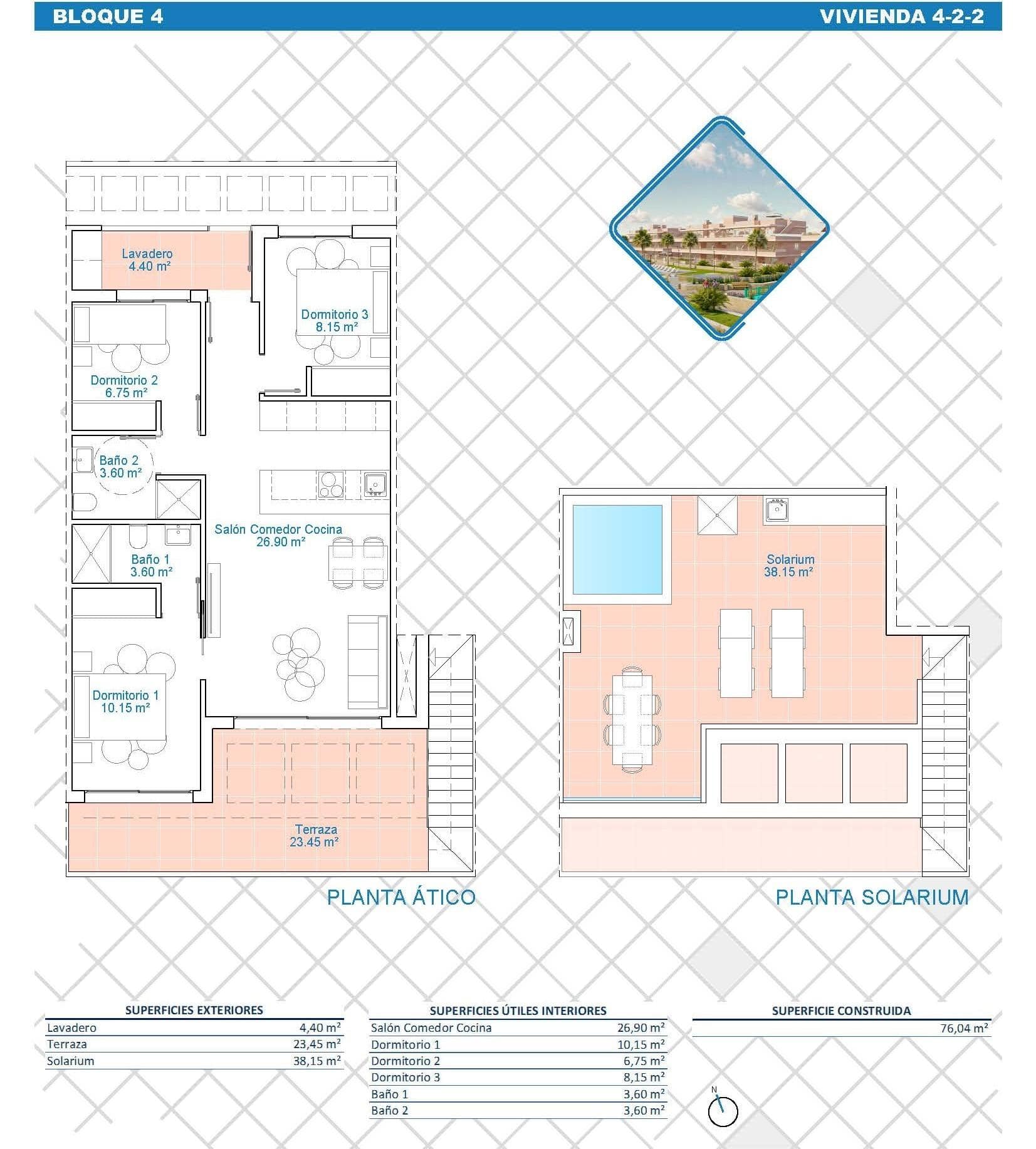Discover this new residential complex in Pilar de la Horadada, a privileged location on the Costa Blanca. Only 2 km from the beach, this project offers a wide variety of 3 bedroom, 2 bathroom properties, with private parking included in the price.