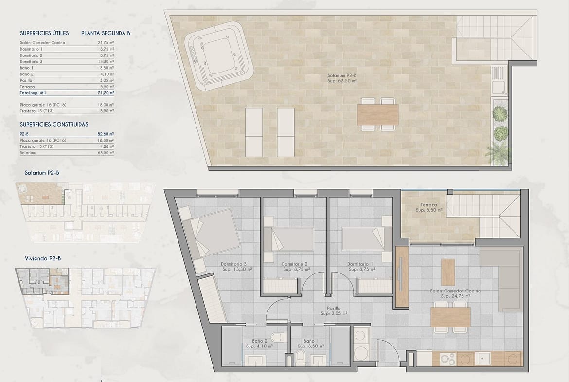 New Build Apartments for Sale in Lo Pagan (San Pedro del Pinatar) Near the Beach Modern Mediterranean Living in Lo Pagan Discover these stylish new build apartments for sale in Lo Pagan, a charming coastal area within San Pedro del Pinatar on the beautiful Costa Calida. Located in the well known neighborhood of Los Cuarteros, this residential development offers a privileged lifestyle just 500 meters from the beach and close to all essential services, restaurants, shops and leisure areas. Lo Pagan is famous for its relaxed seaside atmosphere, the calm waters of the Mar Menor and more than 300 days of sunshine each year. The area combines traditional Spanish charm with modern amenities, making it an ideal destination for both permanent living and holiday homes. Contemporary Apartments with Terraces and Private Solariums The development offers a selection of ground floor and middle floor apartments with spacious terraces, as well as exclusive penthouses with private rooftop solariums. The solariums include a pergola and barbecue area, creating the perfect setting for outdoor dining and relaxing under the Mediterranean sun. Each property has been designed to combine contemporary architecture with warm Mediterranean style. The open plan kitchen integrates seamlessly with the living and dining area, creating bright and comfortable living spaces. Large terraces extend the indoor areas and provide the perfect place for outdoor breakfasts or evening gatherings. Bedrooms feature built in wardrobes and the modern bathrooms are fully equipped, offering comfort and elegant finishes throughout the home. Quality Features and Community Facilities These homes are built with attention to detail and include high quality specifications to ensure comfort and efficiency. Fully furnished kitchen equipped with appliances Fully fitted bathrooms with modern finishes Ducted air conditioning fully installed Private parking space and storage room included with every property Residents can also enjoy excellent communal facilities including a swimming pool surrounded by relaxation areas and a fully equipped gym, ideal for maintaining an active lifestyle all year round. Excellent Location on the Costa Calida This development enjoys a strategic location close to beaches, golf courses and key destinations along the coast. Playa de Villananitos 0.5 km Real Club Nautico de Lo Pagan 0.5 km Lo Romero Golf 10 km Murcia International Airport 40 km Cartagena 35 km The nearby beaches of the Mar Menor such as Playa de La Puntica are known for their fine sand calm waters, ideal for swimming, sailing and water sports. Your New Home by the Sea Awaits Enjoy sunshine, beaches and a vibrant coastal lifestyle in one of the most sought after areas of the Costa Calida. Contact us today for more information about these new build apartments in Lo Pagan and secure your place by the sea.