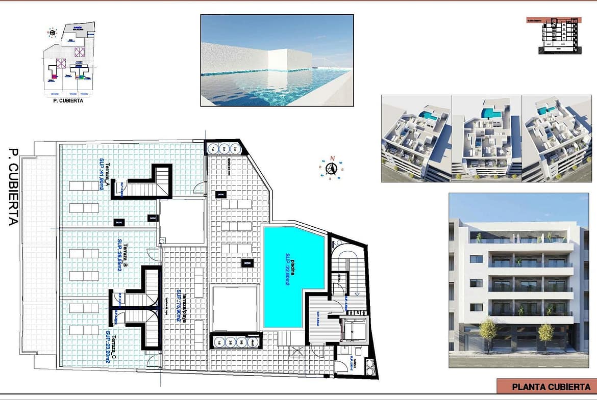 New Build Apartments in Torrevieja Just 400 m from Playa del Cura Prime Location in the Heart of Torrevieja Discover these brand new apartments and penthouses in one of the most sought after areas of Torrevieja, only 400 m from Playa del Cura and just 150 m from the seafront promenade. Located in the city centre, this vibrant neighborhood offers all essential services within walking distance, including supermarkets, shops, restaurants, cafes and public transport. Torrevieja is a well known coastal city on the Costa Blanca, famous for its mild Mediterranean climate, lively atmosphere and year round lifestyle by the sea. Modern Apartments with Spacious Layouts This exclusive new development consists of only 12 apartments and penthouses with 2 or 3 bedrooms, designed to offer comfort, functionality and contemporary style. Middle floor apartments feature generous terraces, while the penthouses enjoy an additional private solarium, ideal for sunbathing or outdoor dining. All homes include an open plan kitchen connected to the living and dining area, creating bright and welcoming interiors. Bedrooms come with fitted wardrobes, and bathrooms are fully equipped with furniture, mirrors and shower screens. Optional underground parking spaces and storage rooms are available at an extra cost. Quality Finishes and Energy Efficient Features The apartments are built with high quality materials and a strong focus on energy efficiency. Exterior aluminum carpentry includes thermal break technology and double glazing for thermal and acoustic insulation. Motorized shutters add comfort and security. Each home has pre installation for ducted air conditioning and heating, reinforced entrance doors and white lacquered interior doors. Hot water is produced through an aerothermal system, reducing energy consumption and improving sustainability. Rooftop Solarium with Communal Pool Residents can enjoy an exclusive rooftop solarium with a communal swimming pool, accessible by lift or stairs. This private area is perfect for relaxing, sunbathing and enjoying open views over the city. It provides a peaceful retreat above the lively streets of Torrevieja and adds significant value to the development. Torrevieja Lifestyle and Surroundings Torrevieja is known for its long coastline, sandy beaches and iconic salt lagoons. The Natural Park of La Mata and Torrevieja lagoons is approximately 5 km away and offers walking trails and unique landscapes. Several golf courses such as Villamartin Golf and Las Colinas Golf are within 12 to 18 km. Torrevieja Marina and port are around 1 km away. Alicante Airport is approximately 45 km and Murcia International Airport around 65 km, both with excellent European connections. Your Coastal Home Awaits Do not miss this opportunity to own a modern new build apartment close to the beach in Torrevieja. Contact us today for more information or to arrange a private viewing.