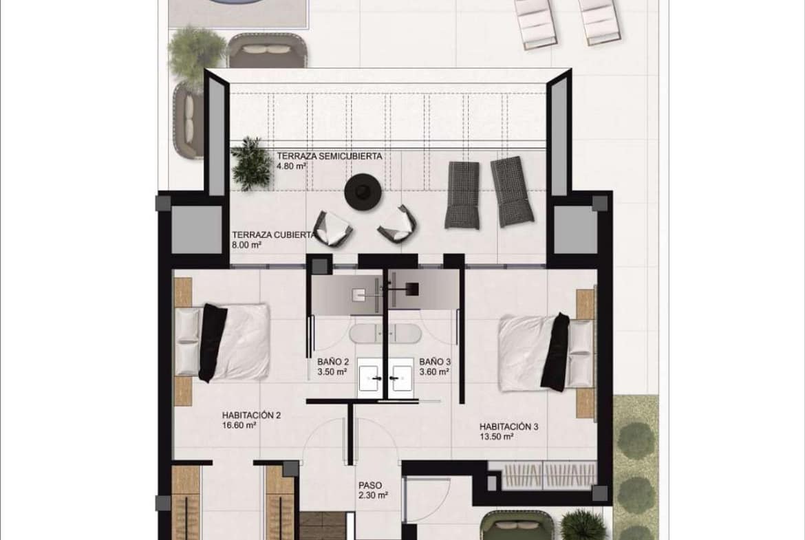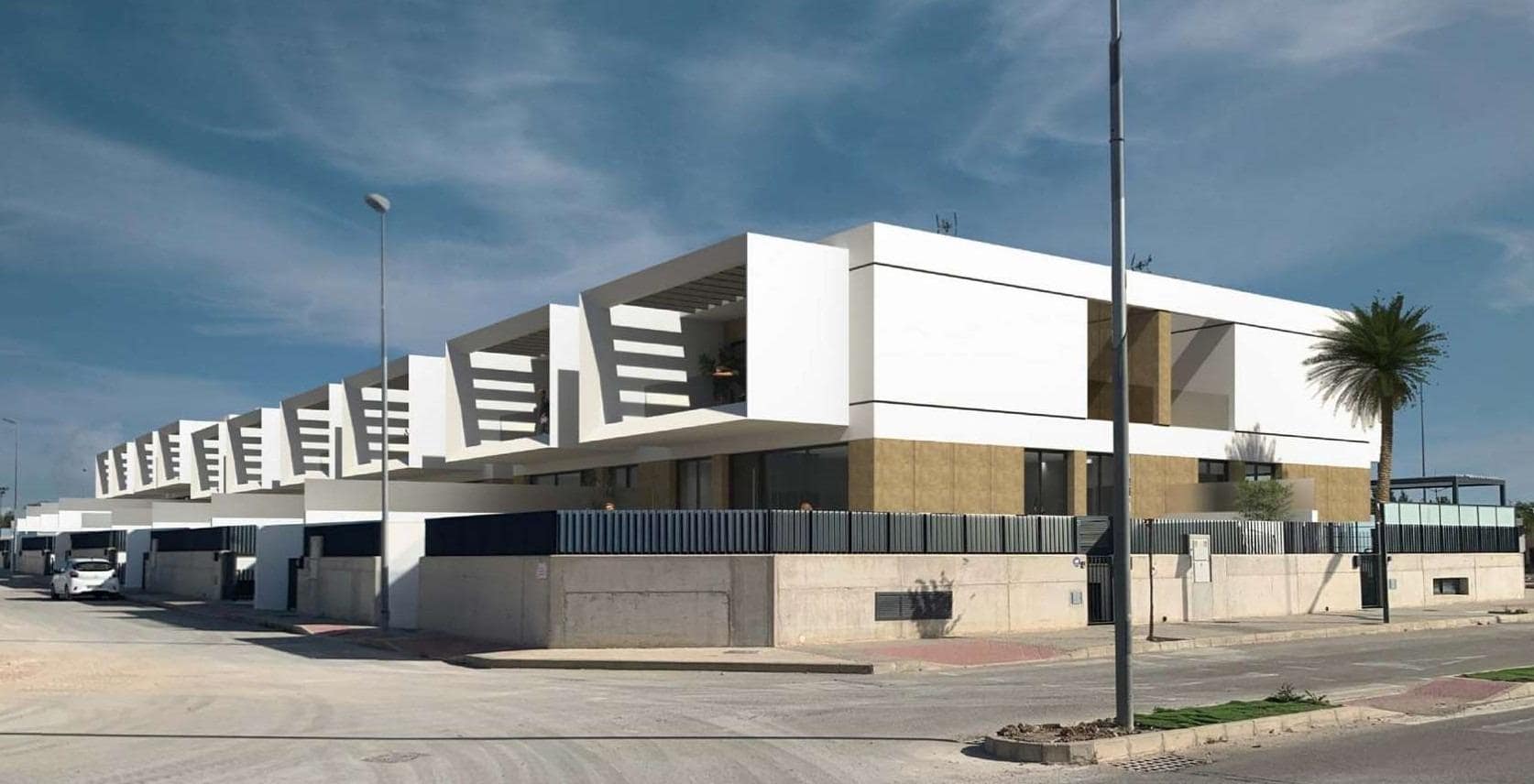 NEW BUILD QUADS IN DOLORES New Build residential of modern quads in Dolores. Quads build over 2 floors, has 3 bedrooms, 3 bathrooms, open plan kitchen, living room with direct access to the terrace, private garden with the pool and parking space. Dolores is a town located in the comarca of Vega Baja del Segura in southern Alicante province, Spain. The town is in the heart of the Segura huerta about 10 km from the nearest beaches in La Marina and Guardamar. Complex located 30 minutes from Alicante airport and 1 hour Murcia – Corvera airport.