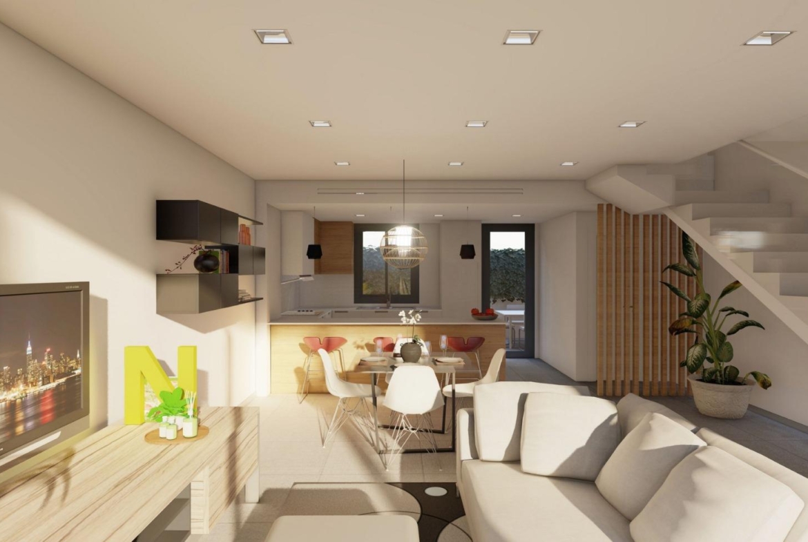 Discover a new residential development of 44 modern townhouses in Cox, Alicante. These homes are available in 2- and 3-bedroom layouts, each featuring a private solarium, terraces, patios, and private parking. The community offers access to shared areas, including a communal swimming pool, creating an ideal environment for relaxation.