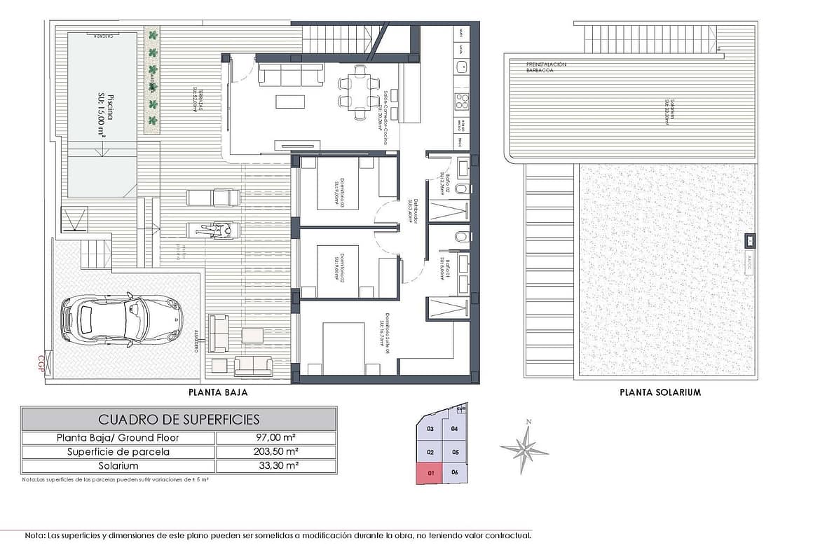 New Build Ibiza Style Townhouses in Dolores Costa Blanca Exclusive Residential Villas in a Peaceful Setting This boutique residential development consists of just 6 new build townhouses with elegant Ibiza style architecture, located in the charming town of Dolores in the south of Alicante province. Set in a new expansion area close to the town center, these homes offer a quiet residential environment while remaining within walking distance of local services such as shops, restaurants, supermarkets and medical facilities. Dolores is surrounded by the fertile countryside of Vega Baja, known for its relaxed atmosphere and excellent quality of life. Single Level Design with Spacious Outdoor Areas Each villa is designed on one single level to provide maximum comfort and accessibility. The interior layout includes an open plan kitchen connected to a bright living and dining area, three spacious bedrooms and two modern bathrooms. Outside, each property features a private plot with terrace, landscaped garden, private swimming pool and an on plot parking space (except 2 units). A highlight of these homes is the generous private solarium, offering open views of the surrounding countryside and the perfect space to enjoy the Mediterranean climate all year round. Modern Finishes and Energy Efficient Features These new build villas are constructed with modern materials and quality finishes. Features include electric shutters, a complete interior and exterior lighting package, and bathrooms fitted with furniture, mirrors and shower screens. Hot water is provided through an efficient aerothermal system, enhancing energy efficiency and sustainability. The homes also include pre installation for ducted air conditioning, allowing future owners to customize the climate system to their needs. Well Connected Location Near Beaches and Golf Dolores enjoys an excellent location with easy access to the main coastal and leisure areas of the Costa Blanca. The sandy beaches of Guardamar del Segura and Torrevieja are approximately 12 km away, offering long promenades, natural dunes and a wide range of beach activities. Several well known golf courses such as La Finca, La Marquesa and Vistabella Golf are located within 10 to 15 km. Water parks and leisure attractions can be found nearby in Rojales and Torrevieja. Key Distances and Points of Interest Guardamar and Torrevieja beaches are around 12 km away. Alicante Airport is approximately 30 km or 25 minutes by car, providing regular connections to major European cities. The city of Elche is about 20 km away, while Alicante city center is around 35 km. Nearby marinas and ports in Guardamar and Torrevieja add to the lifestyle appeal. Your Mediterranean Home Awaits These exclusive Ibiza style townhouses in Dolores offer modern living, privacy and an excellent location close to beaches, golf and amenities. Contact us today for more information or to arrange a viewing and secure your new home on the Costa Blanca.