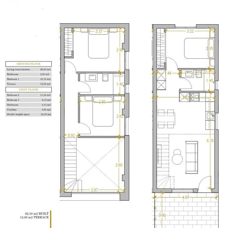 7 townhouses of 2 and 3 bedrooms with access to a communal swimming pool.