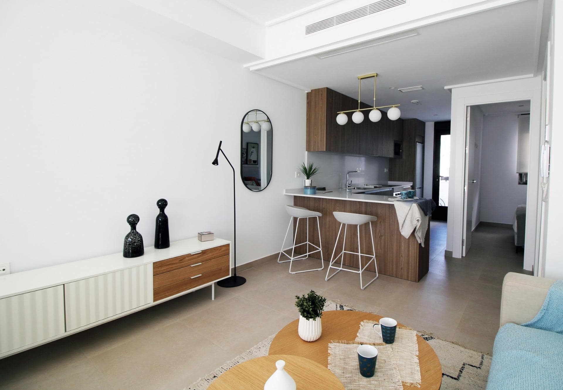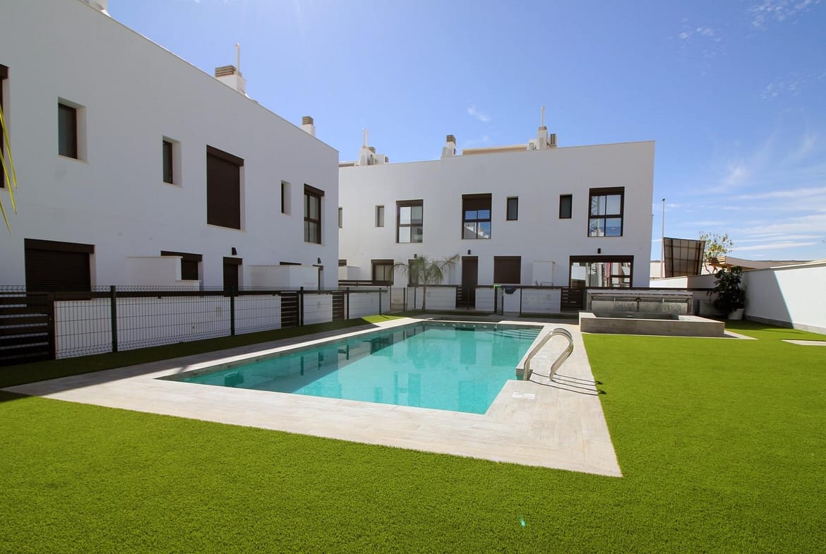 NEW BUILD TOWNHOUSES IN PILAR DE LA HORADADA New Build modern townhouses built in a quiet part of Pilar de la Horadada with proximity to everything you need. Townhouses has 4 bedrooms, 2 bathrooms, open plan kitchen, living room with direct access to the cozy pool area, terrace at the back with parking space , terrace and large roof solarium. Pilar de la Horadada is a typical Spanish village in the most southern part of the Costa Blanca. The large main street has supermarkets, lots of shops, restaurants and bars and some lovely squares. The beautiful beaches of Torre de la Horadada and Mil Palmeras with fine sand promenade is just 5 minutes away. The airports of Corvera (Murcia) and Alicante are respectively 40 and 55 minutes away.